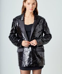 Endless Rose Women’s Sequin Oversized Jacket | Black