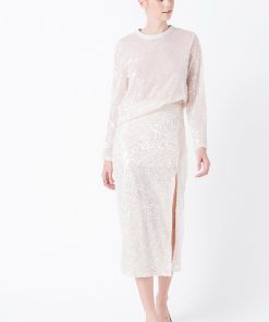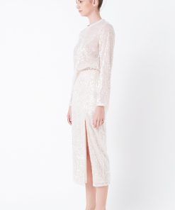 Endless Rose Women’s Sequin Vent Midi Skirt | Nude Pink