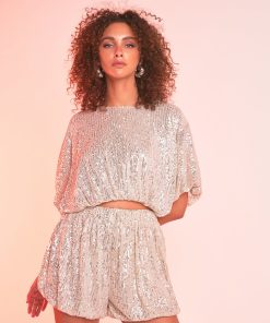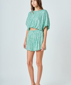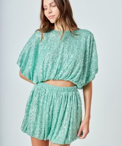 Endless Rose Women’s Sequins Blouson Shorts | Green|blue|ivory|pink|black
