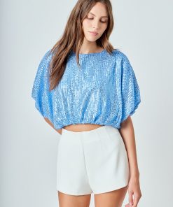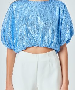 This stunning Sequins Cropped Puff Top combines classic and modern styling. The elastic sleeve and bodice openings provide a perfect fit while the classic balloon style design creates a beautiful feminine silhouette. The cropped design and back keyhole closure with button increase comfort and convenience. Enhance any wardrobe with this one-of-a kind top to stand out from the crowd. Perfect for all occasions, this sequin top is the perfect combination of fashion and function.