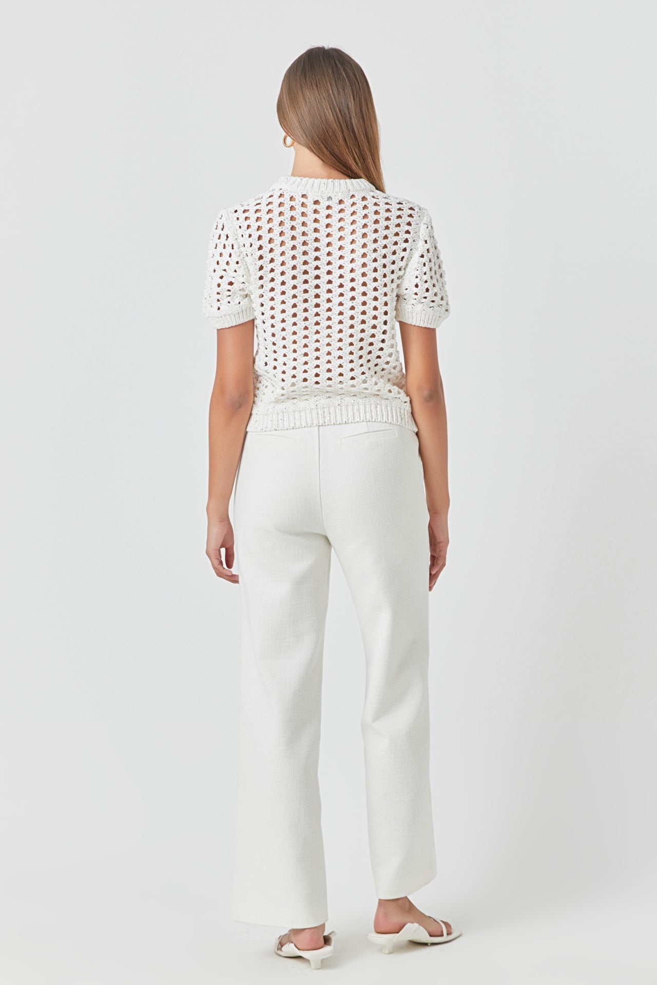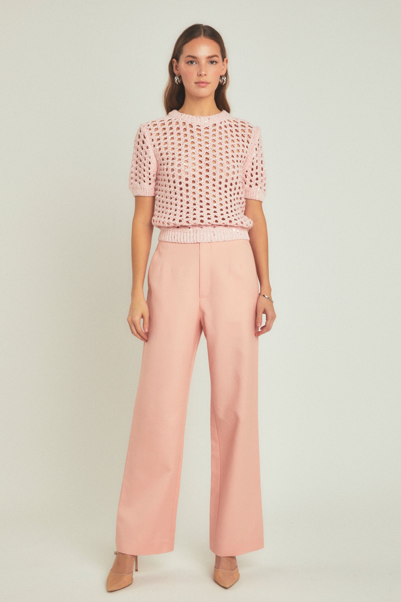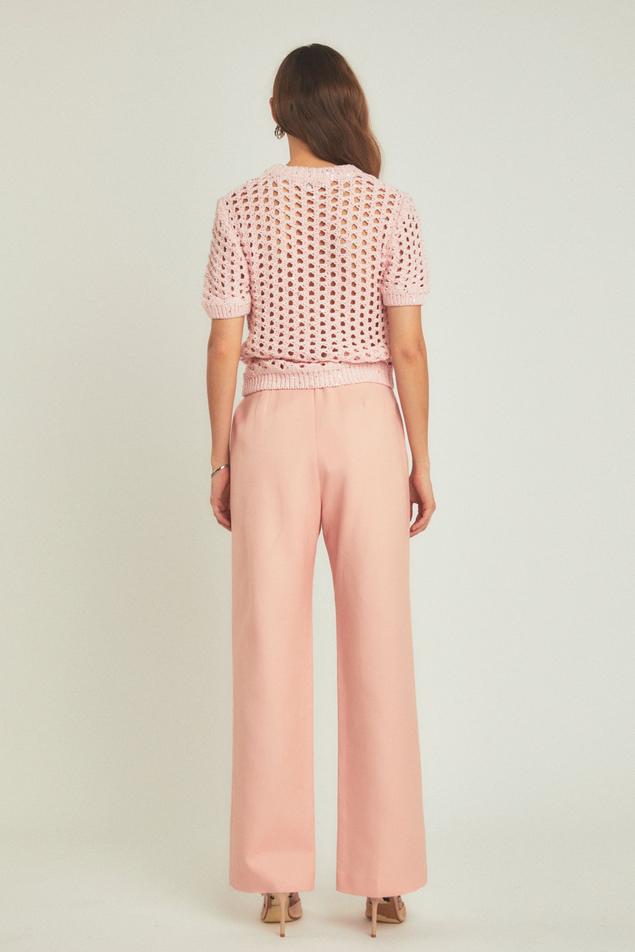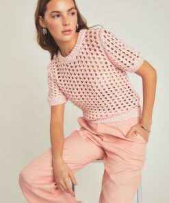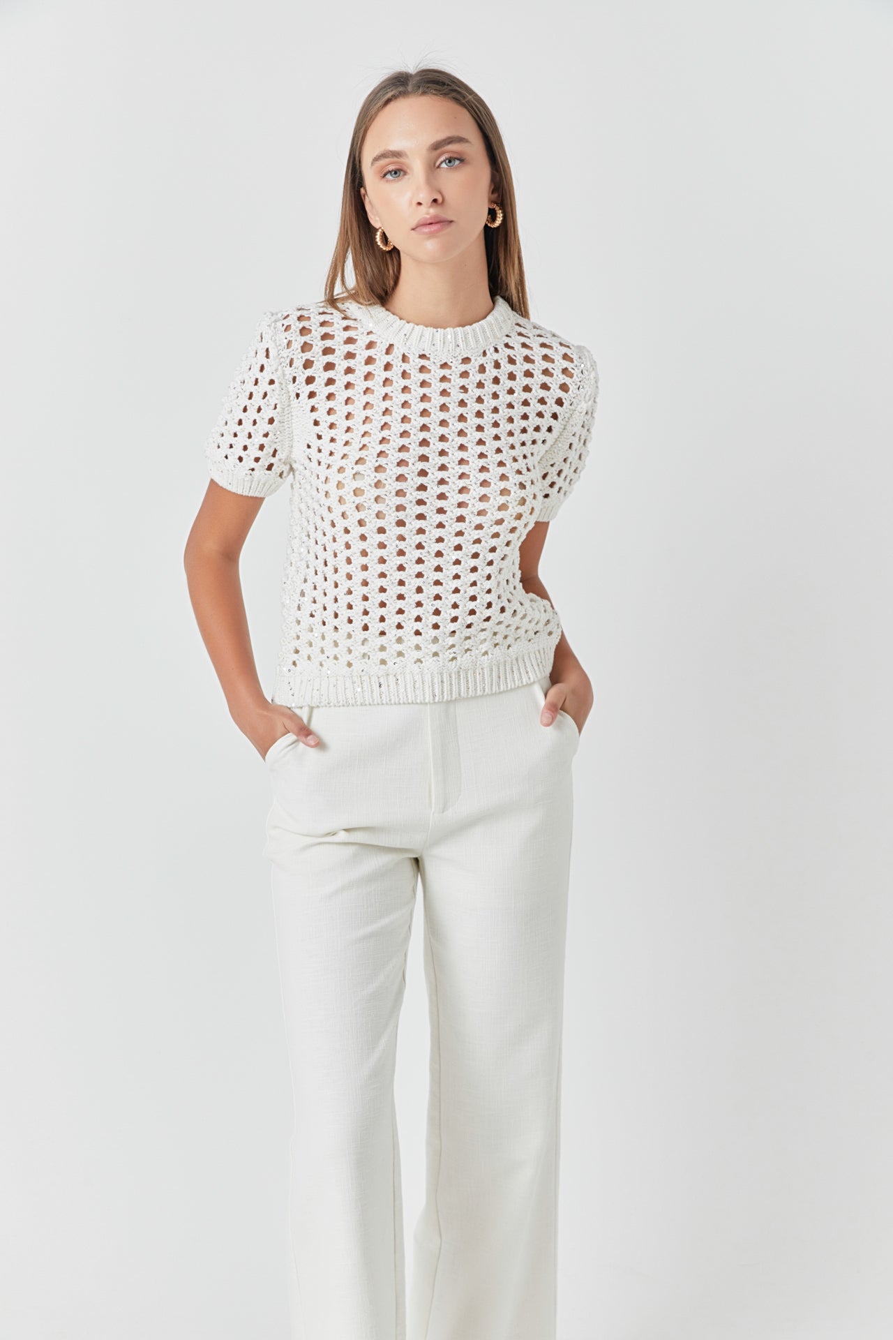 Turn heads in our Sequins Knit Top, crafted with high-quality Lurex yarn that shimmers with every move. The round neckline adds a touch of elegance, while the ribbed details create a flattering fit. Perfect for any occasion, this top features short sleeves to keep you cool and comfortable. Pair it with your favorite jeans for a casual look or dress it up with a skirt for a night out. With its eye-catching sequins and versatile design, this top is a must-have in your wardrobe. Shop now and add a touch of sparkle to your outfit!