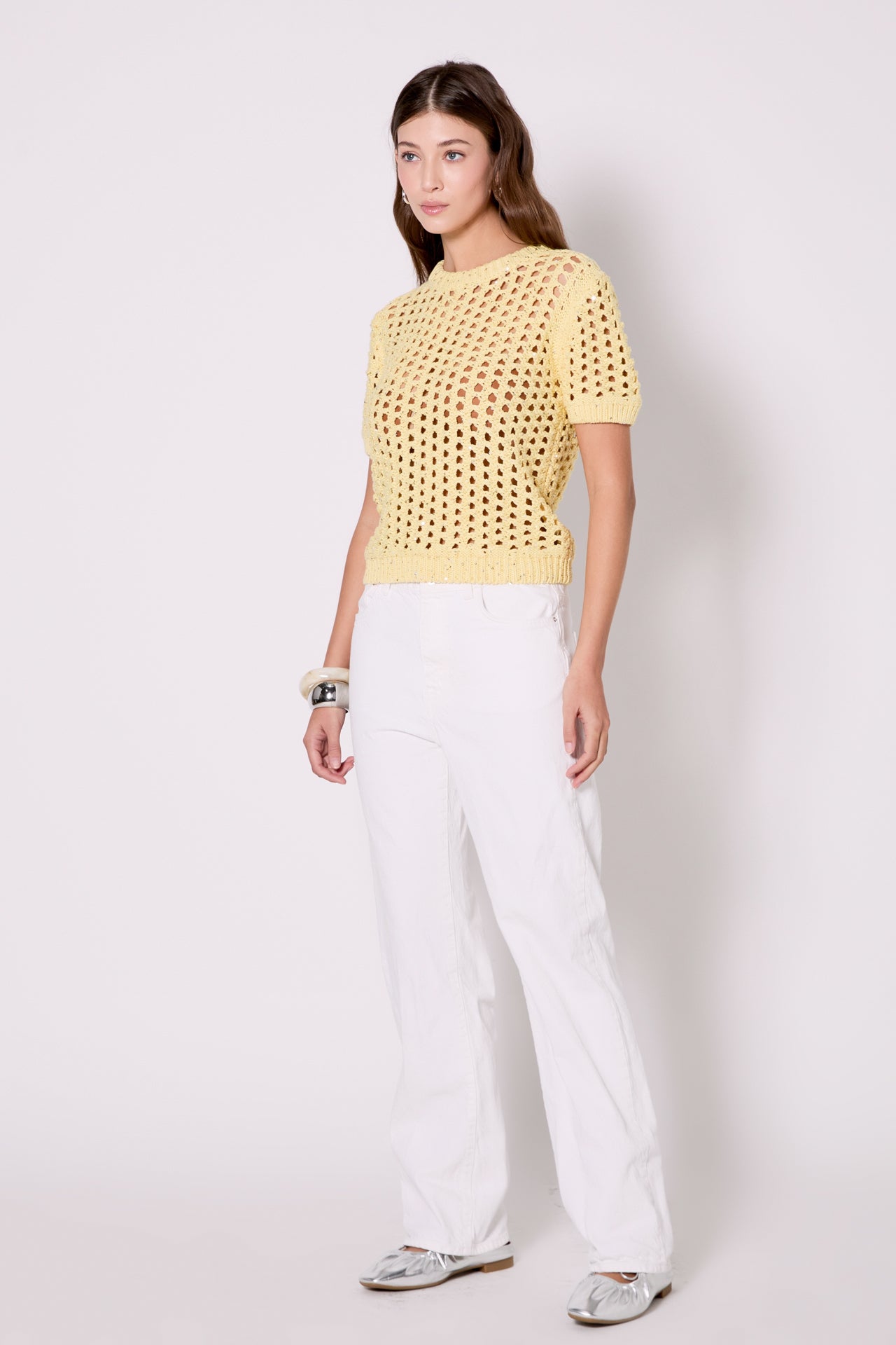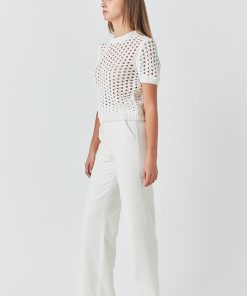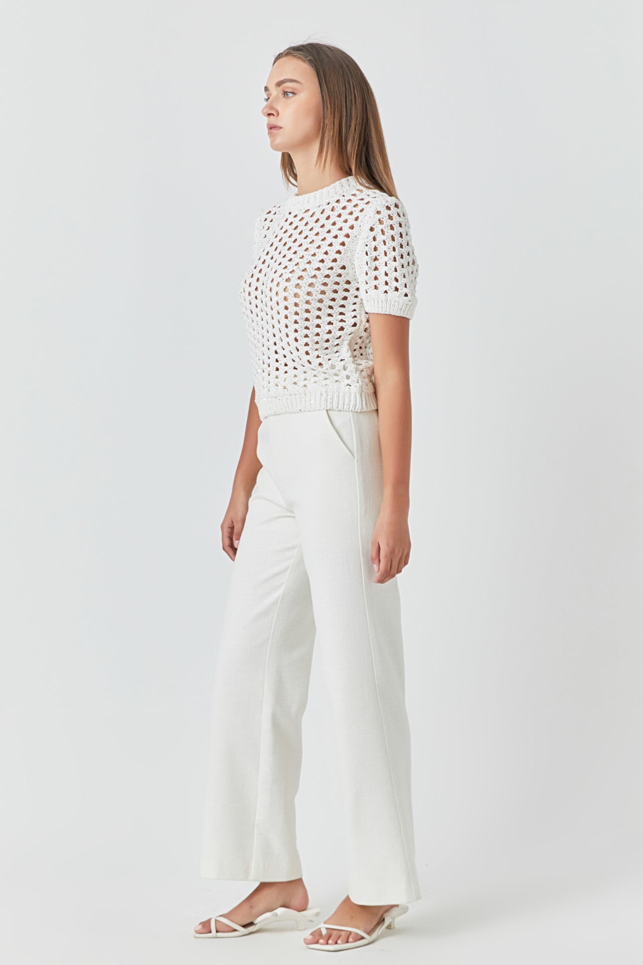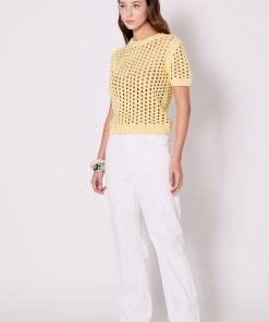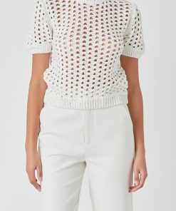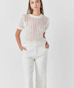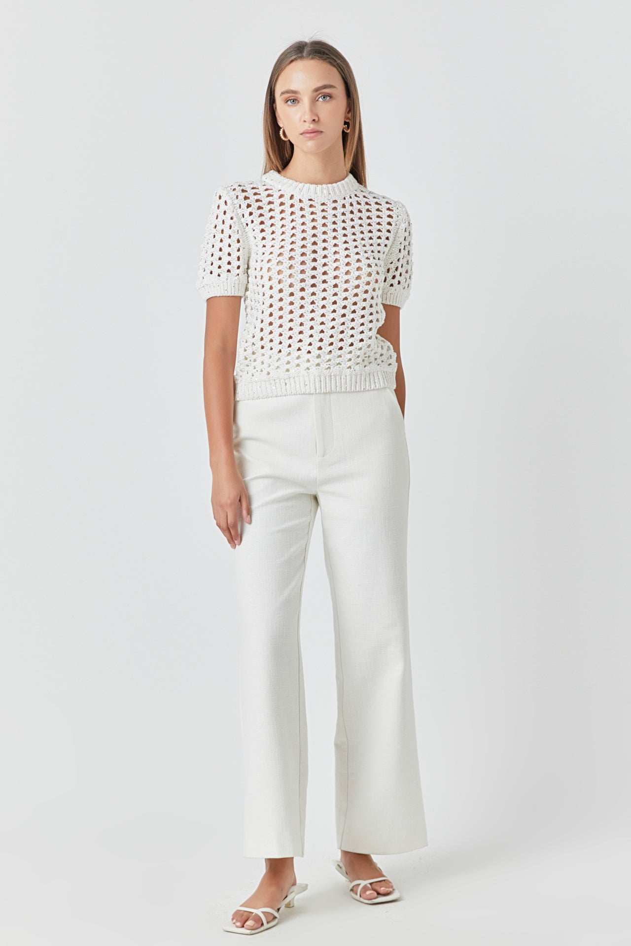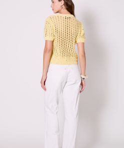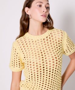 Turn heads in our Sequins Knit Top, crafted with high-quality Lurex yarn that shimmers with every move. The round neckline adds a touch of elegance, while the ribbed details create a flattering fit. Perfect for any occasion, this top features short sleeves to keep you cool and comfortable. Pair it with your favorite jeans for a casual look or dress it up with a skirt for a night out. With its eye-catching sequins and versatile design, this top is a must-have in your wardrobe. Shop now and add a touch of sparkle to your outfit!
