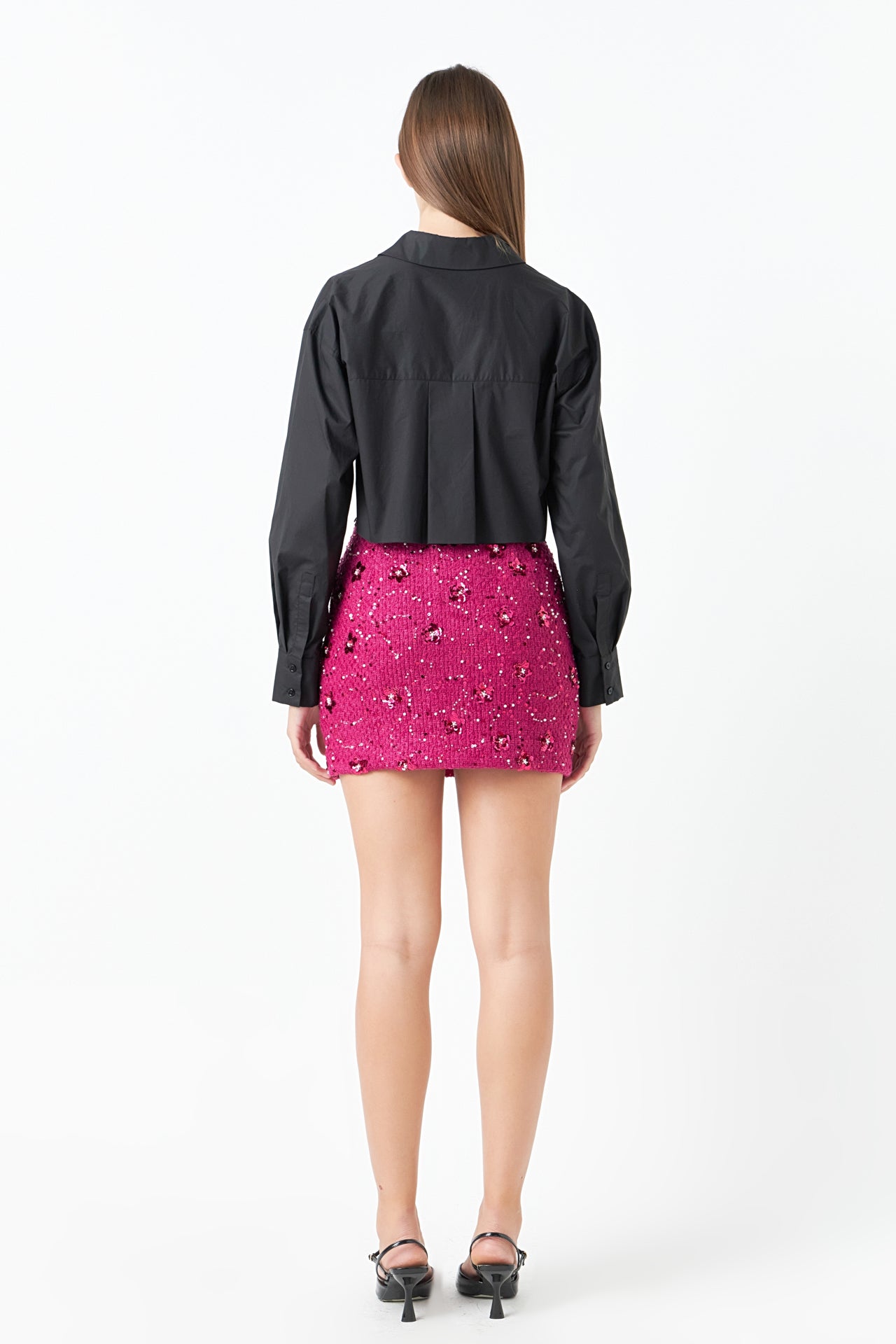 Shine in this stunning Sequins Mini Skirt! Crafted with a side zipper and lined for ease of wear this mini length skirt is sure to make any outfit stand out. Featuring shimmering sequins and a sleek silhouette you’ll be sure to leave a lasting impression with this statement piece. This skirt is the perfect addition to make any wardrobe more gorgeous and unique. Look fabulous and shop our Sequins Mini Skirt now!