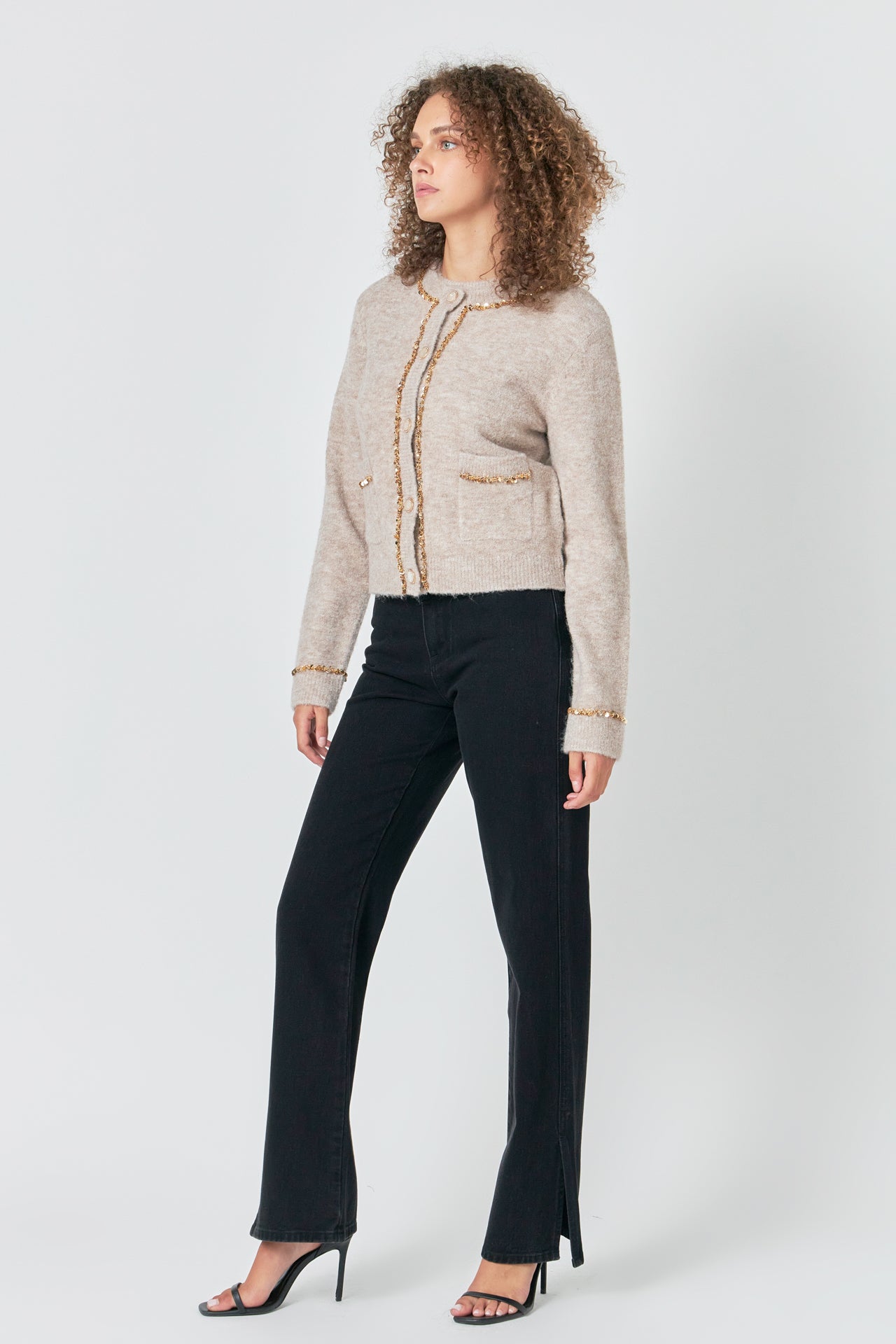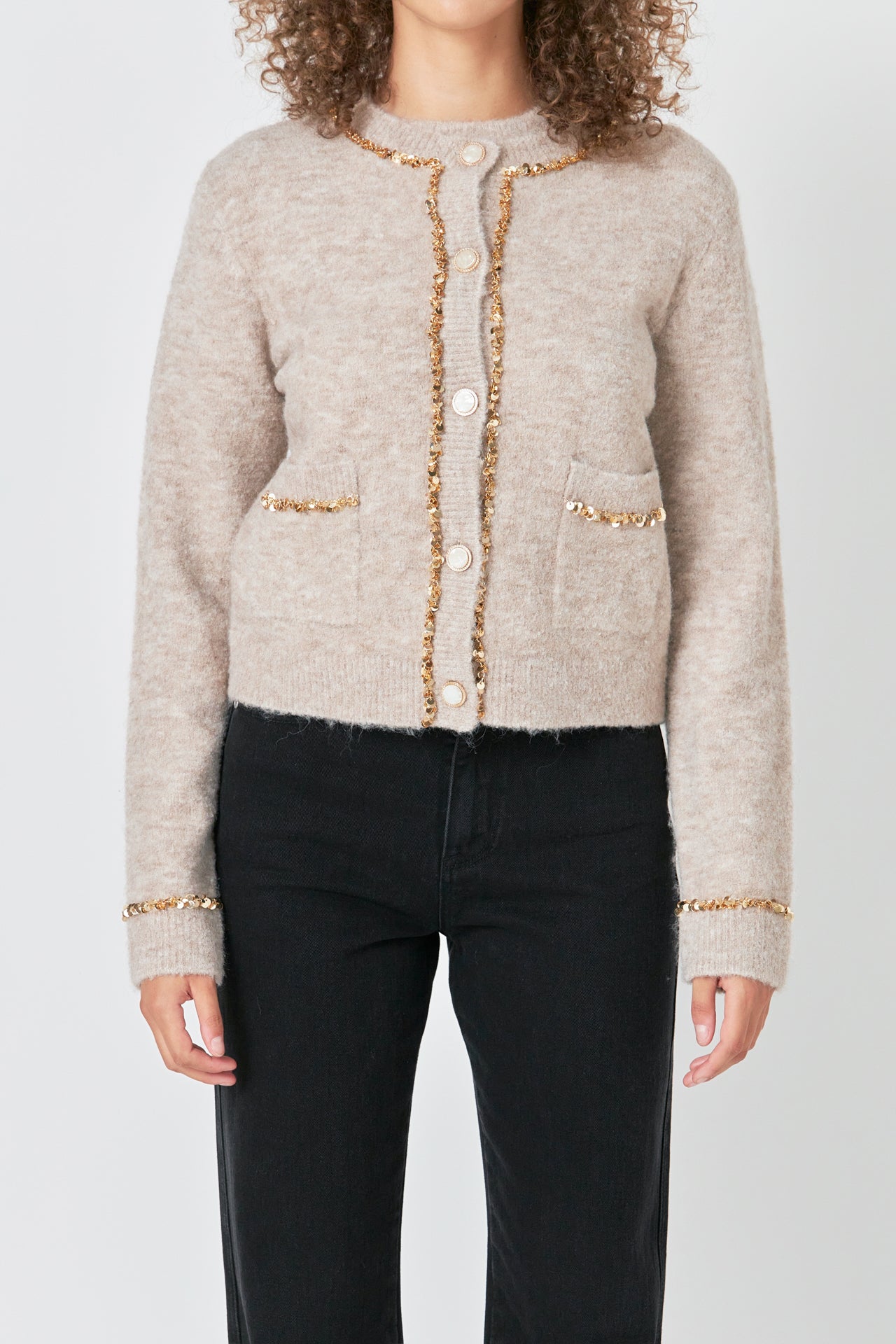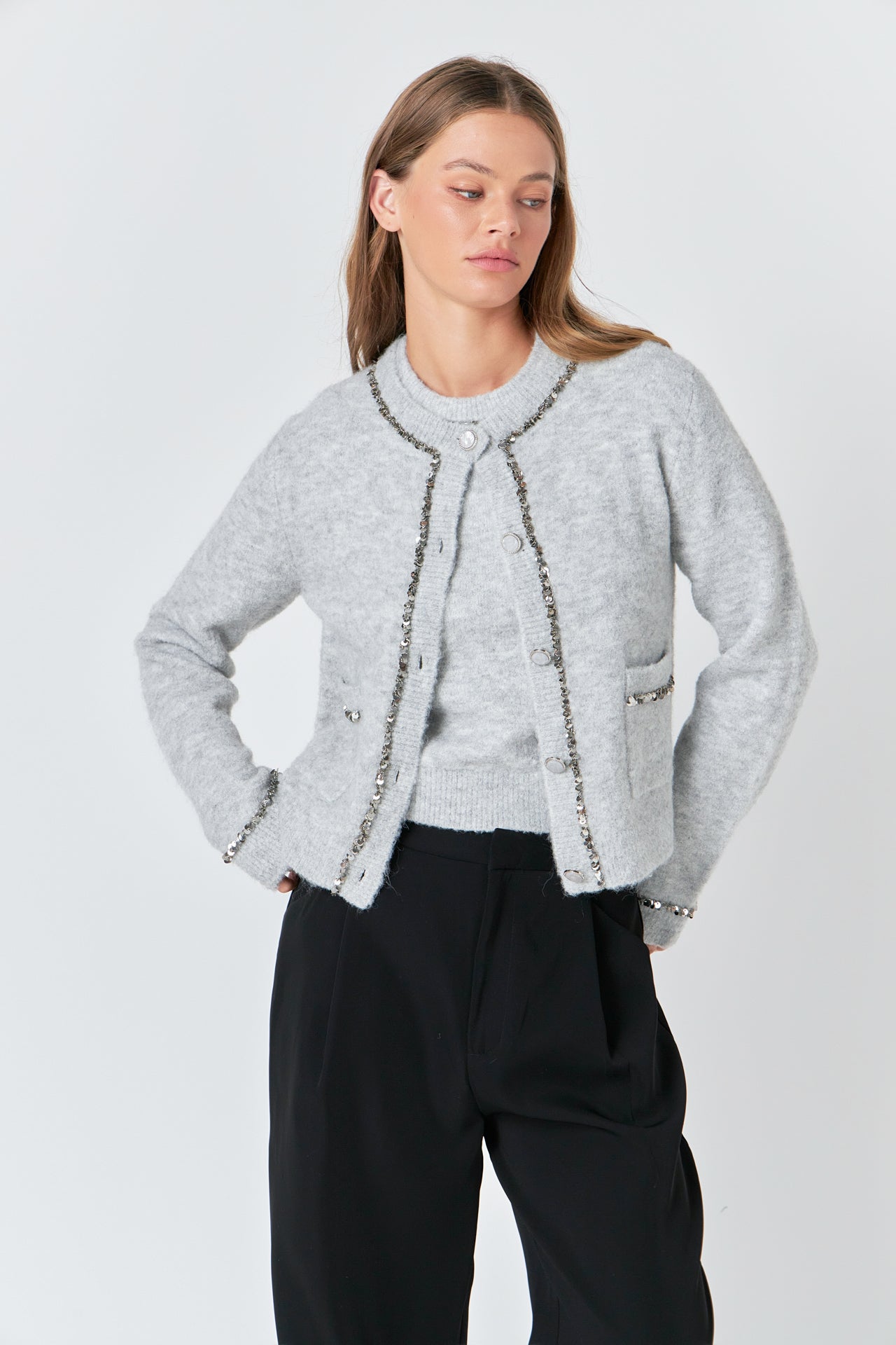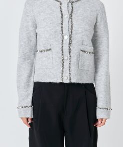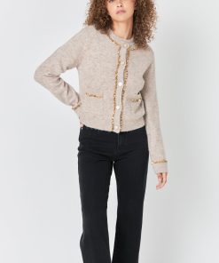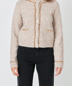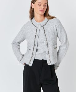 Endless Rose Women’s Sequins Trim Cardigan | Heather Grey|taupe