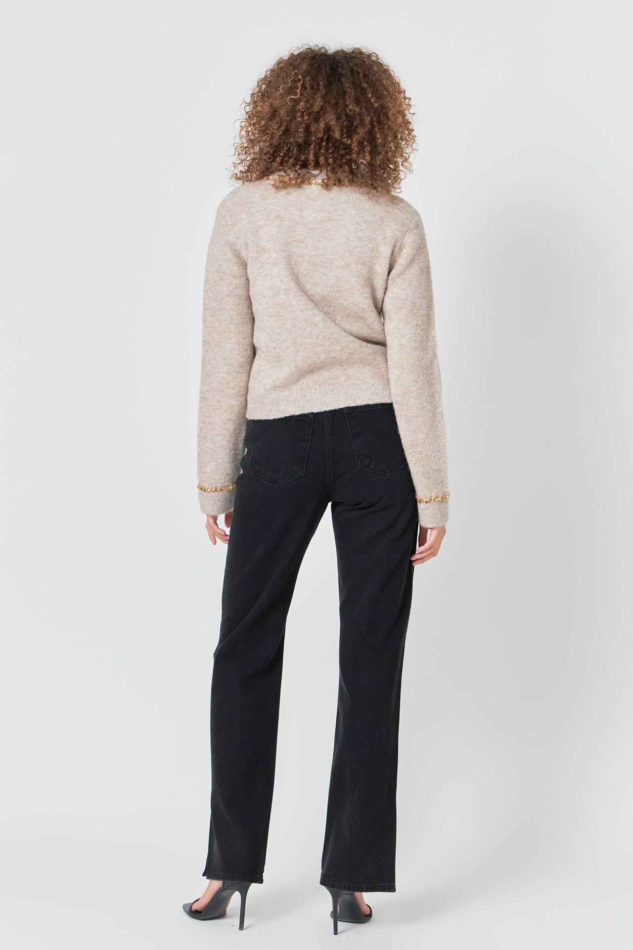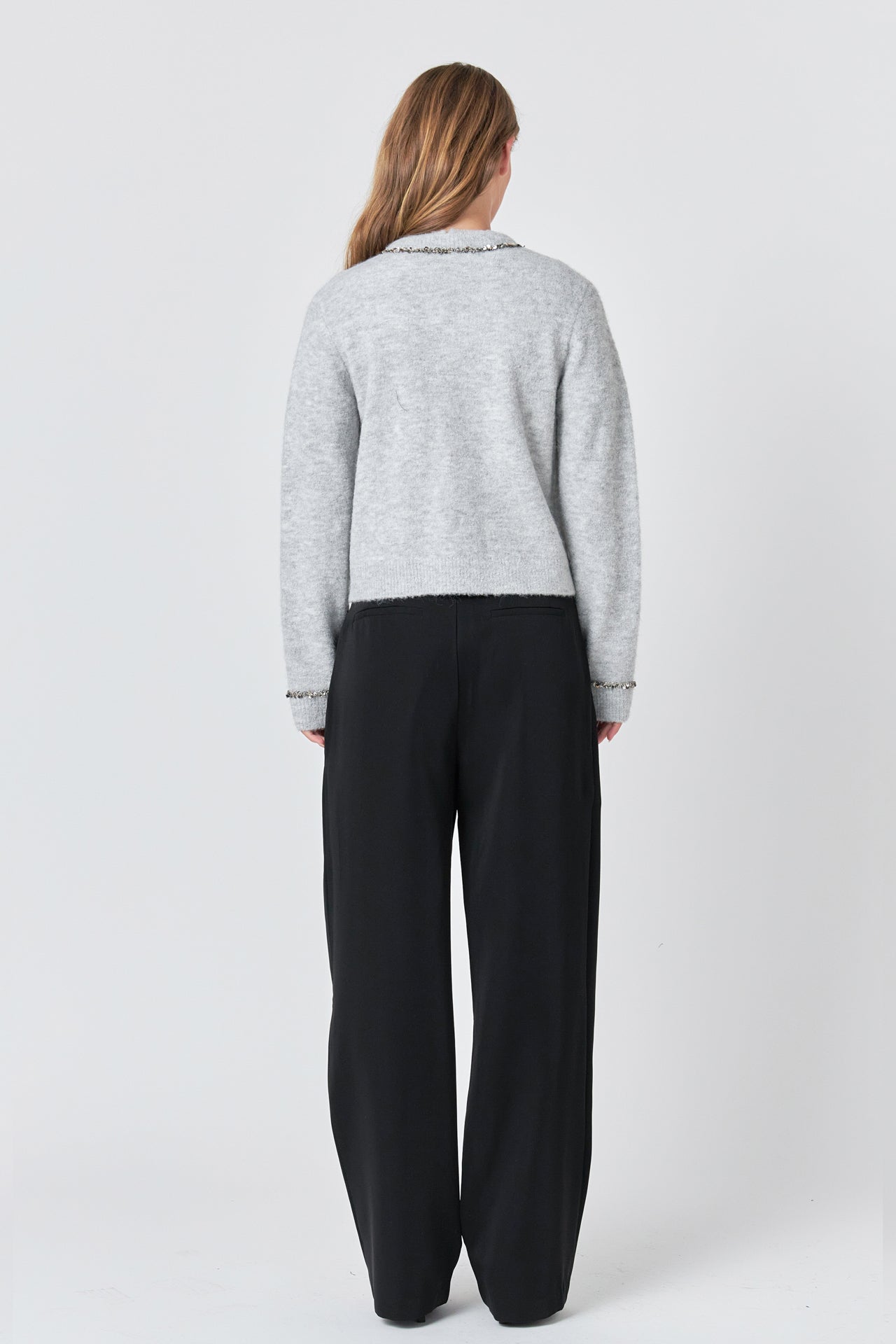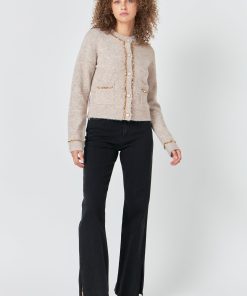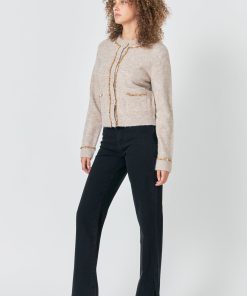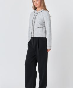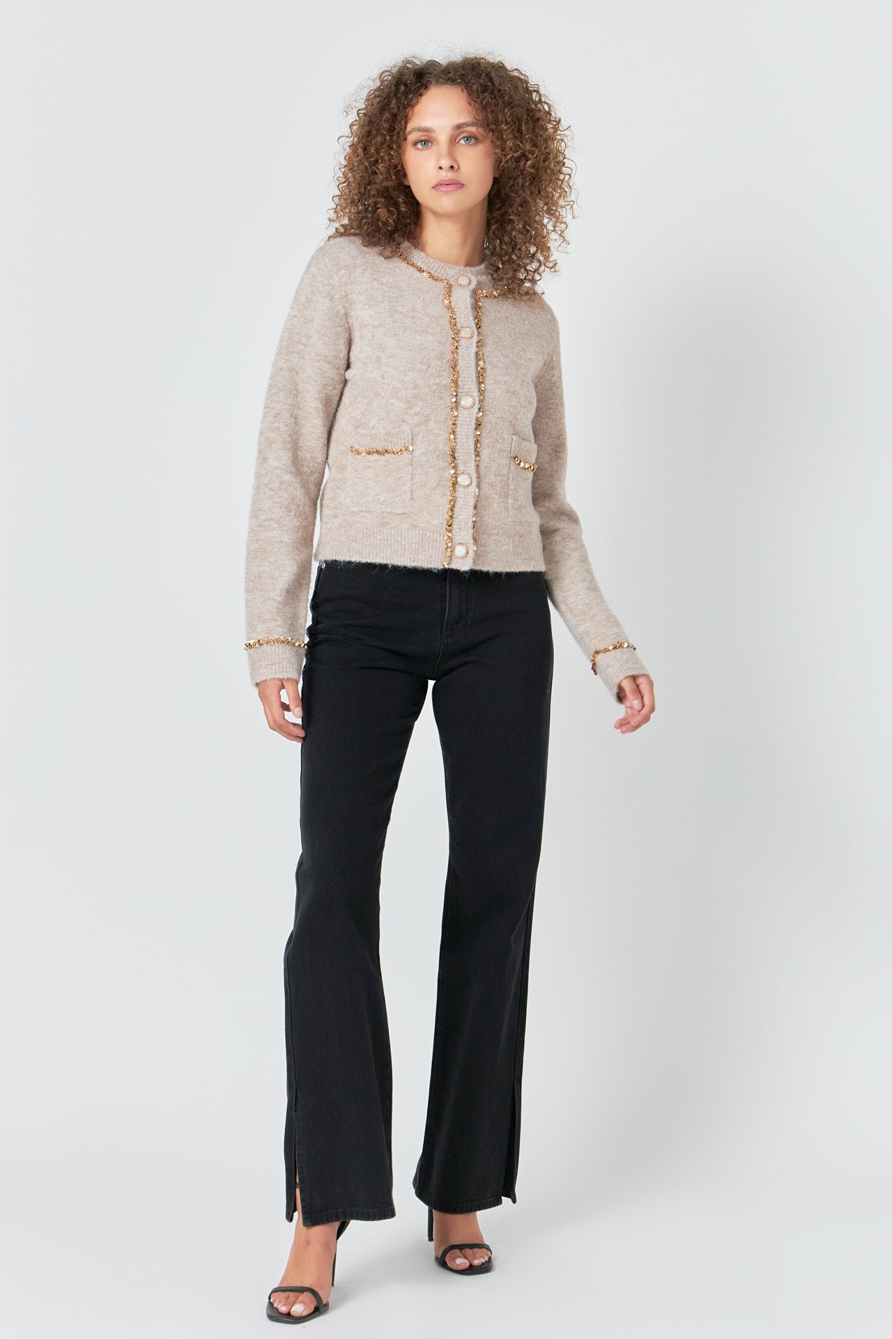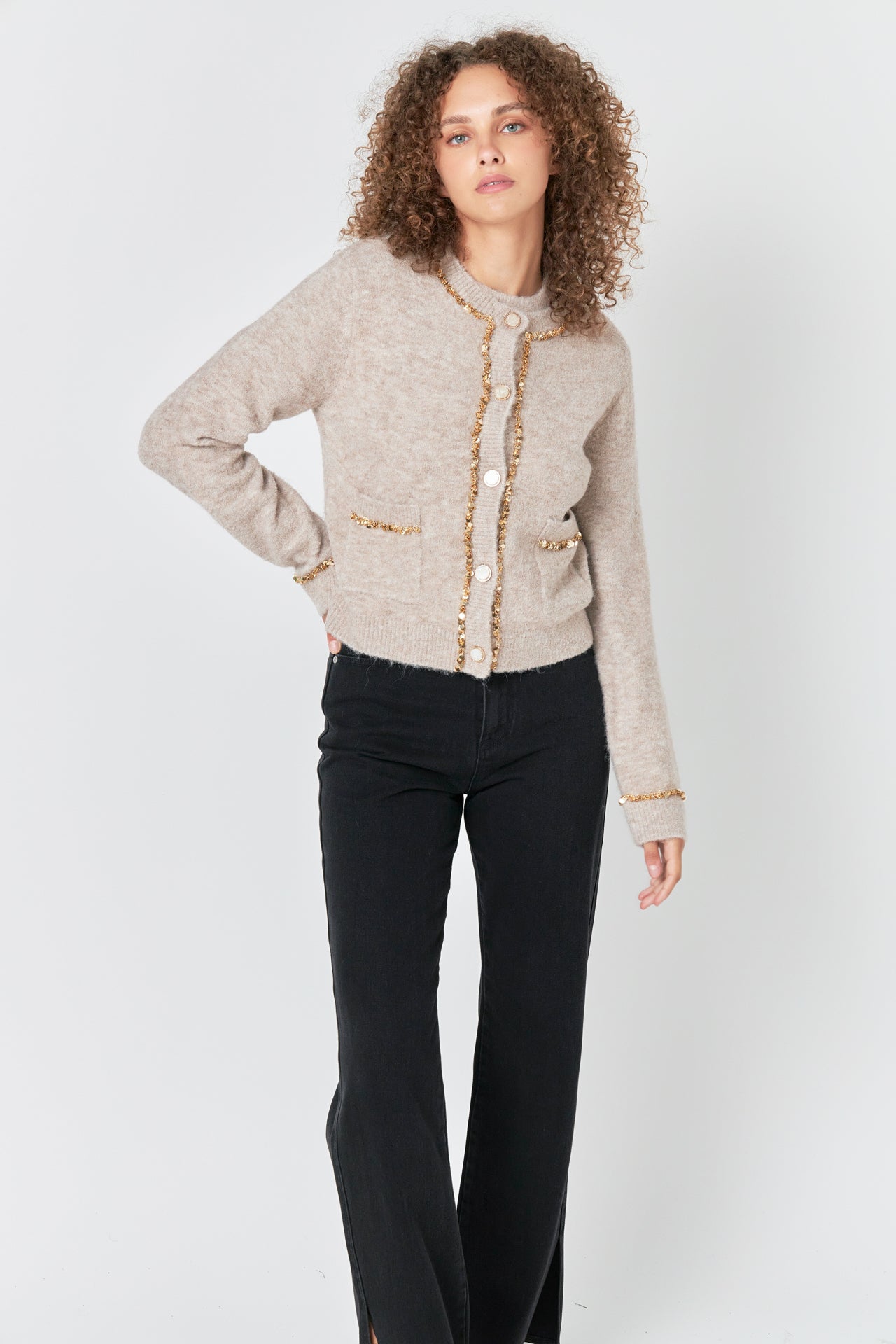 Endless Rose Women’s Sequins Trim Cardigan | Heather Grey|taupe