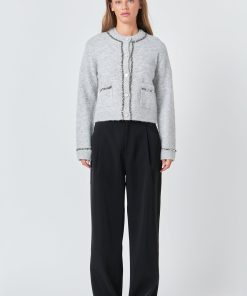 Endless Rose Women’s Sequins Trim Cardigan | Heather Grey|taupe