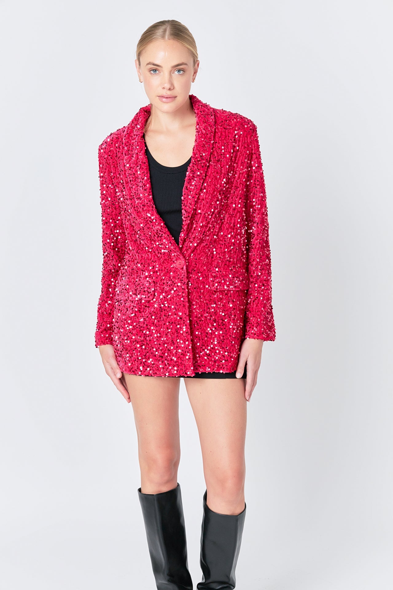 Endless Rose Women’s Sequins Velvet Blazer | Fuchsia