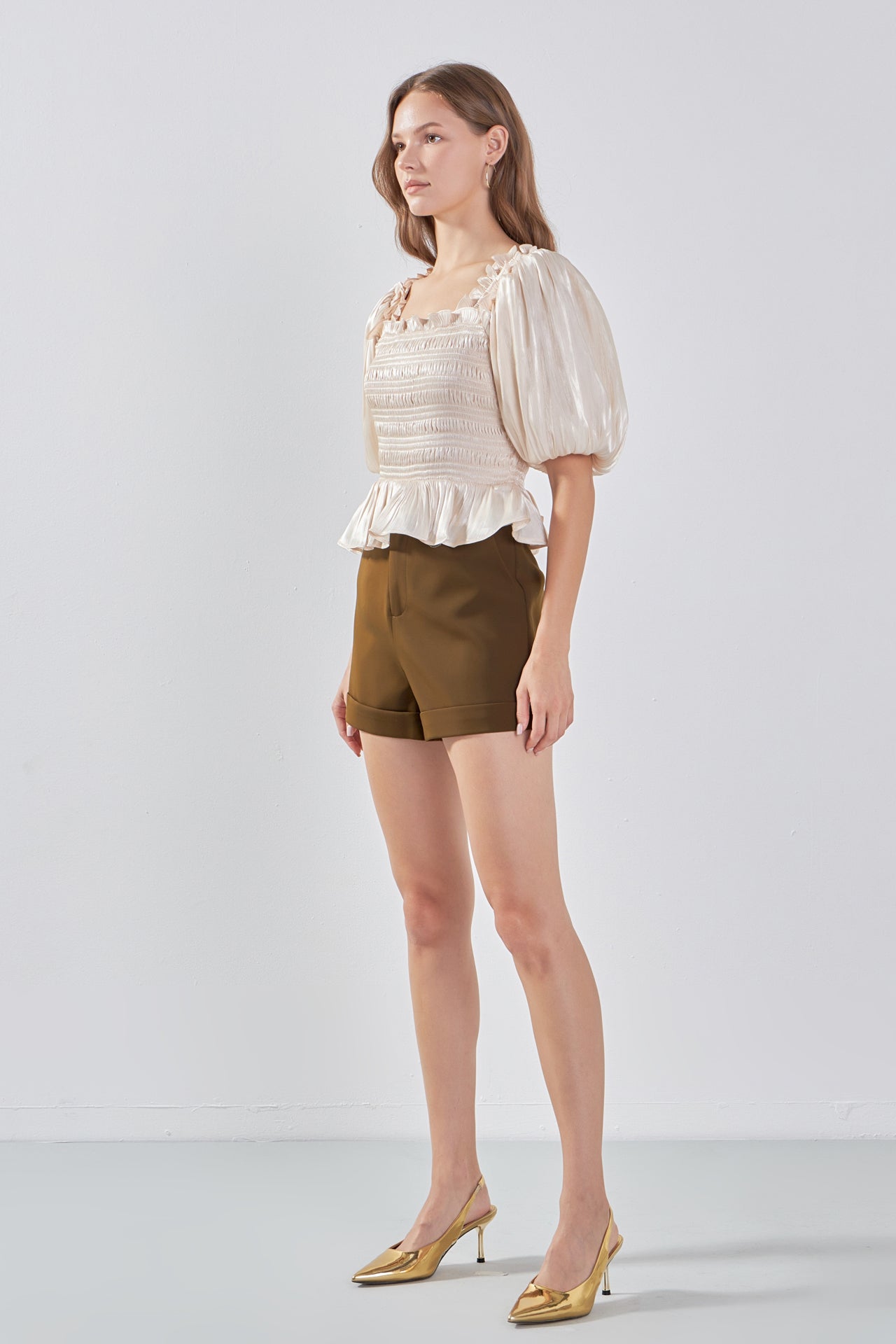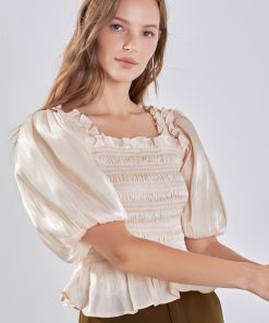 Feminine and timeless, this smocked top from endless rose will become a go-to in your wardrobe. With its fitted silhouette, square neckline, blouson short sleeves and elastic ruffled shoulders, it’s designed to flatter. The smocking adds texture and depth to the piece while shirring at the peplum adds movement. For a timeless look, pair with classic denim or a floaty skirt, ideal for everything from casual days out to nights on the town.