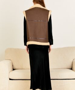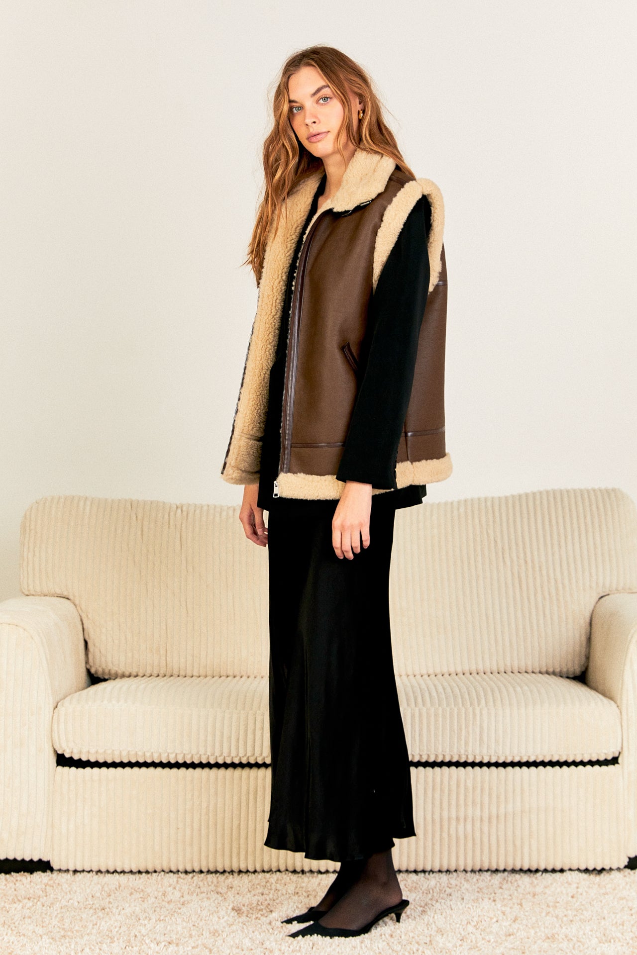 Endless Rose Women’s Sherpa Lined Faux Leather Vest | Chocolate Brown
