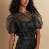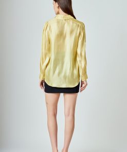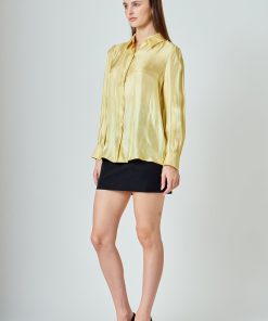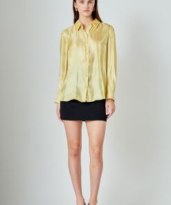 Classic shirt details like buttoned cuffs a curved hemline and center-front buttons make up this Shiny Dress Shirt. The iridescent slightly sheer fabric elevates this wardrobe staple.