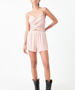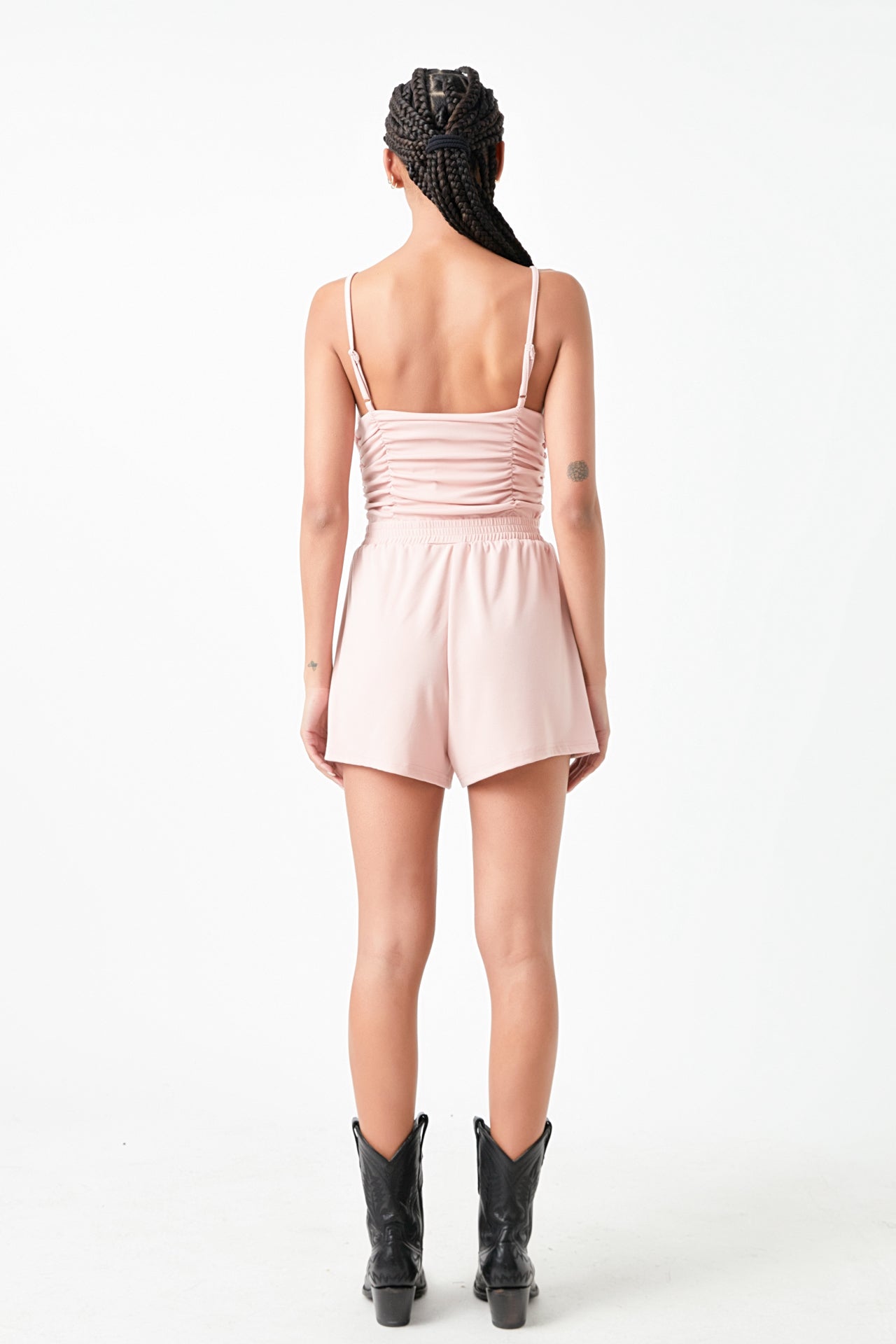 Endless Rose Women’s Shirred Detail Knit Romper | Dusty Pink