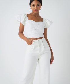 Turn heads in this sexy crop top with shirring detail and puff sleeves. This crop top is perfect for a night out. With a zipper on the back, it’s easy to take on and off. The balloon ruffle gives it some serious style, while the shirred top ensures a comfortable and flattering fit. Pair this crop top with your favorite jeans or skirt for a look that will get you noticed.