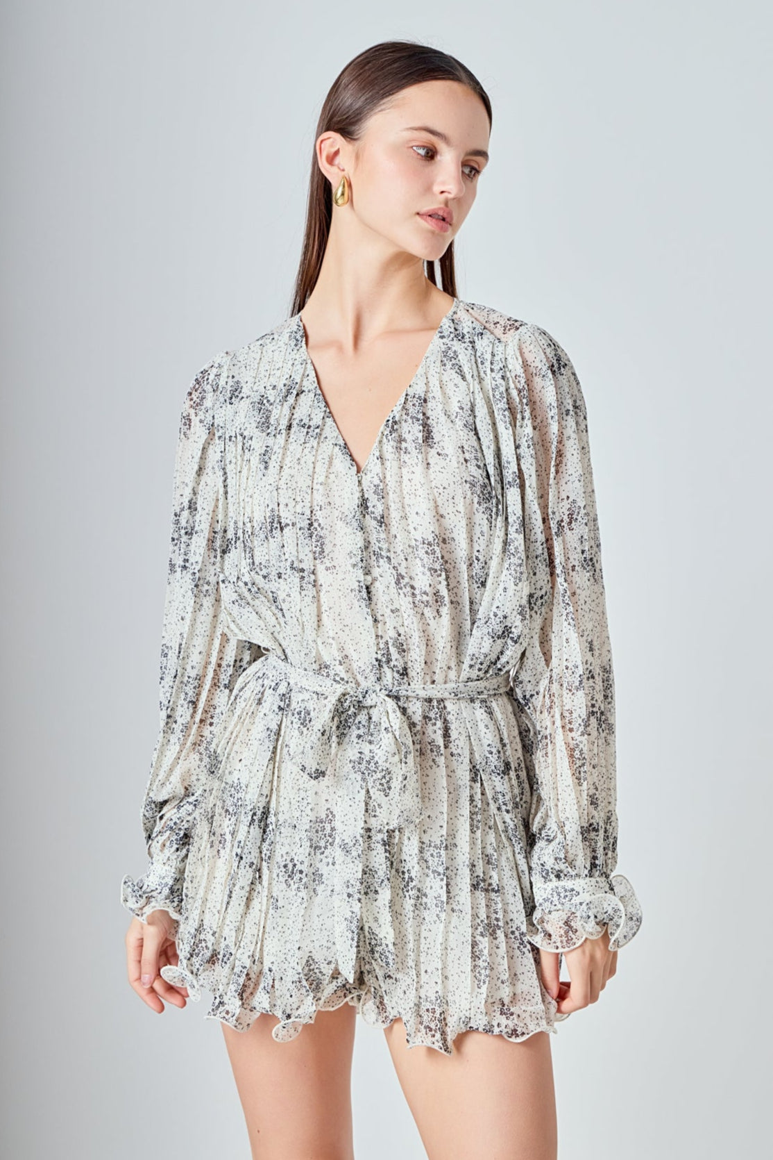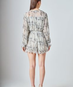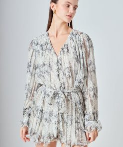 Endless Rose Women’s Speckled Pleated Romper | White & Black