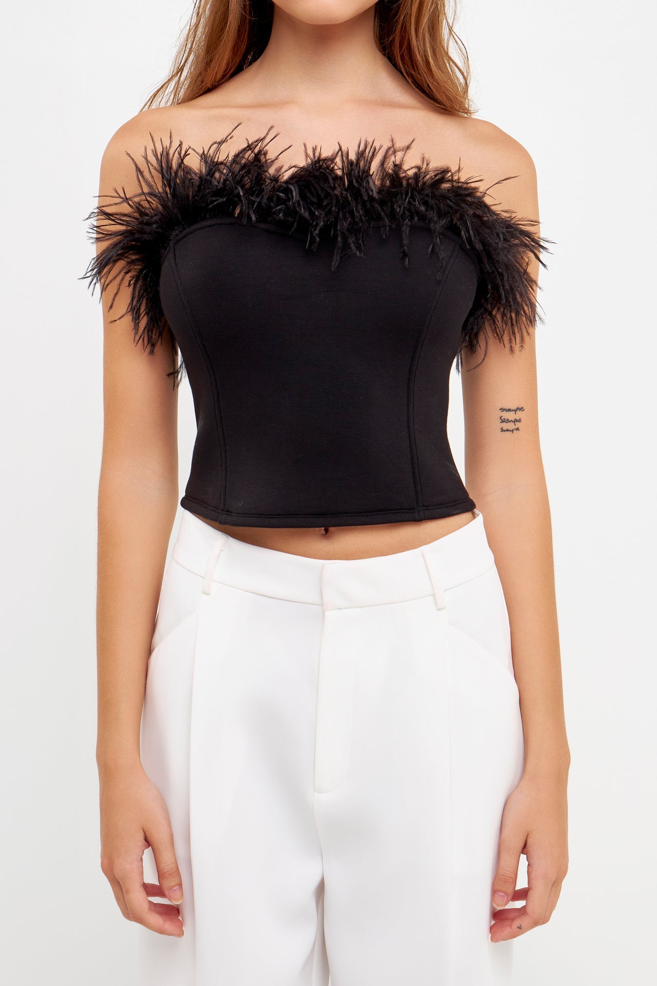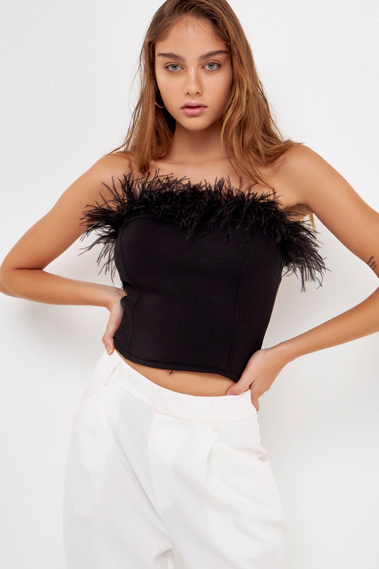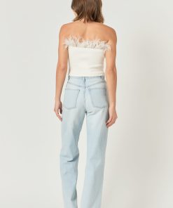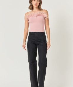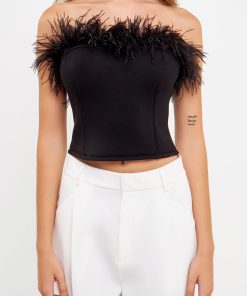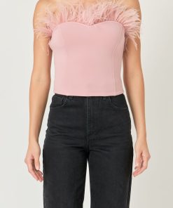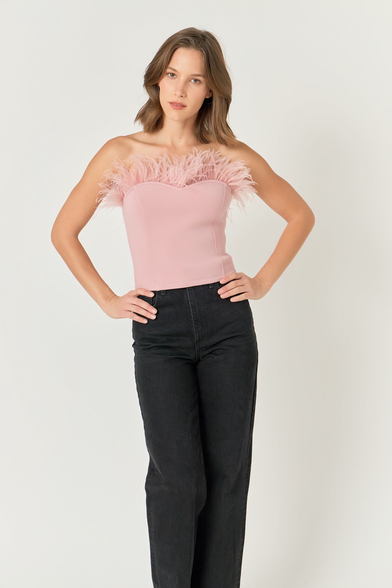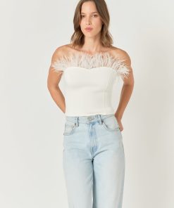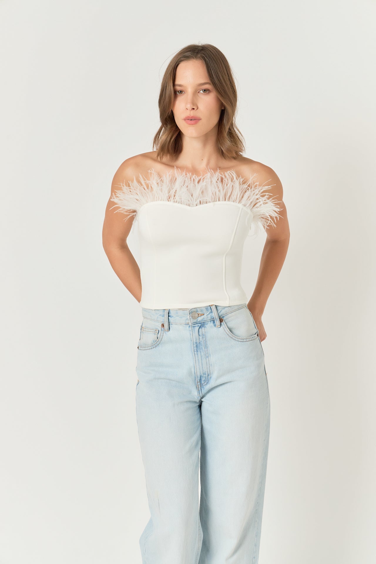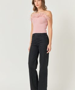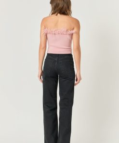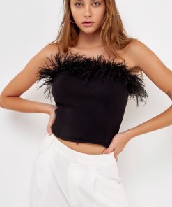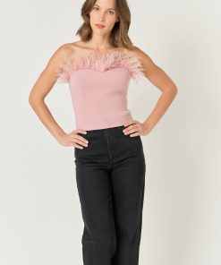 Endless Rose Women’s Strapless Knit Feather Top | White|mauve|black