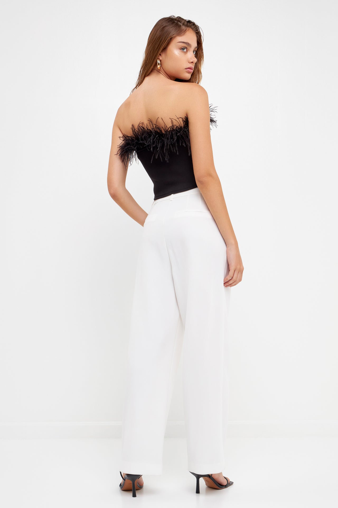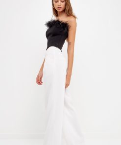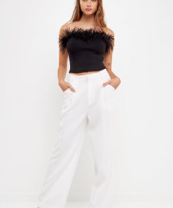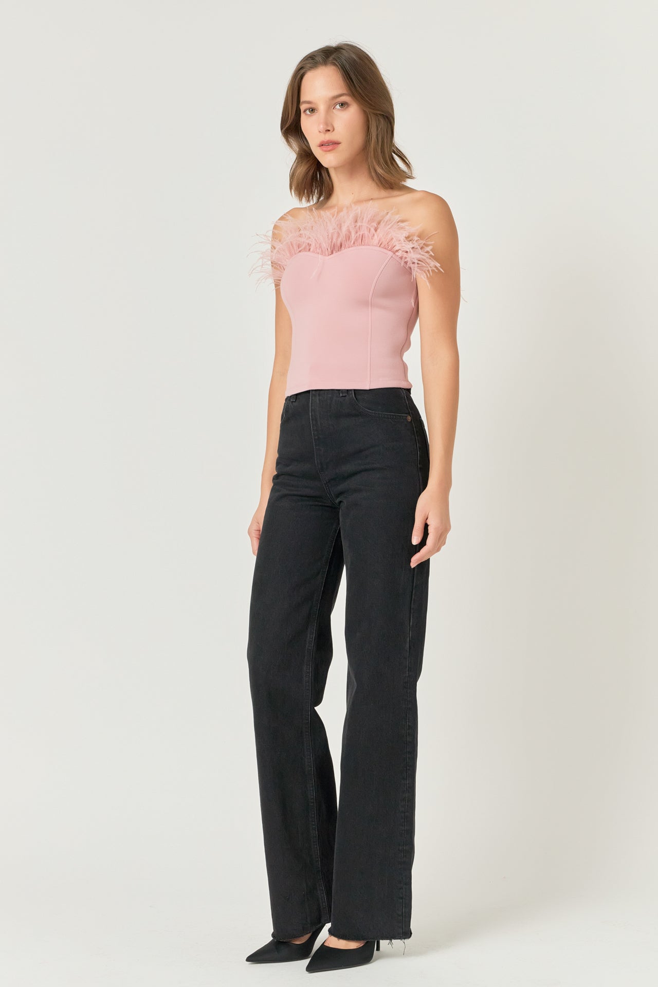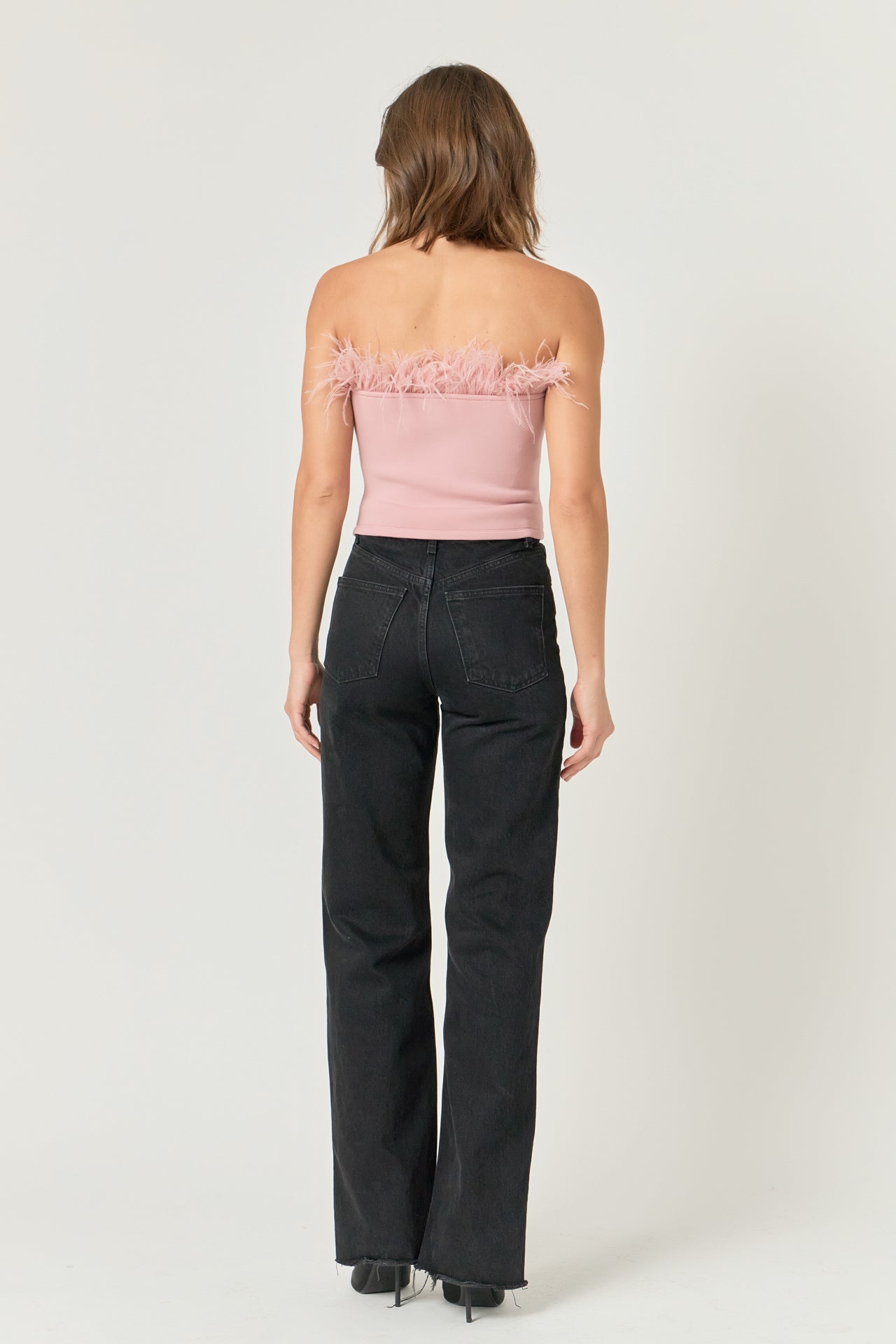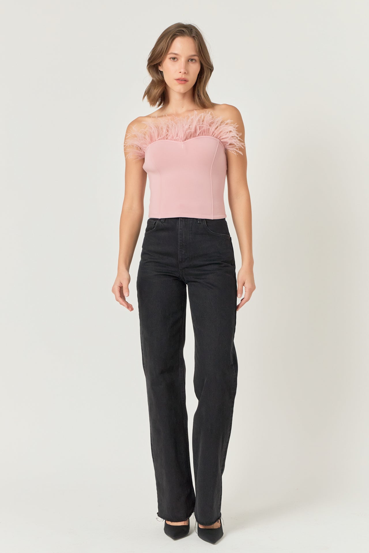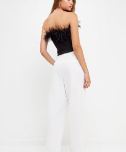 Endless Rose Women’s Strapless Knit Feather Top | White|mauve|black