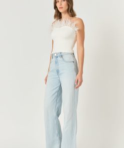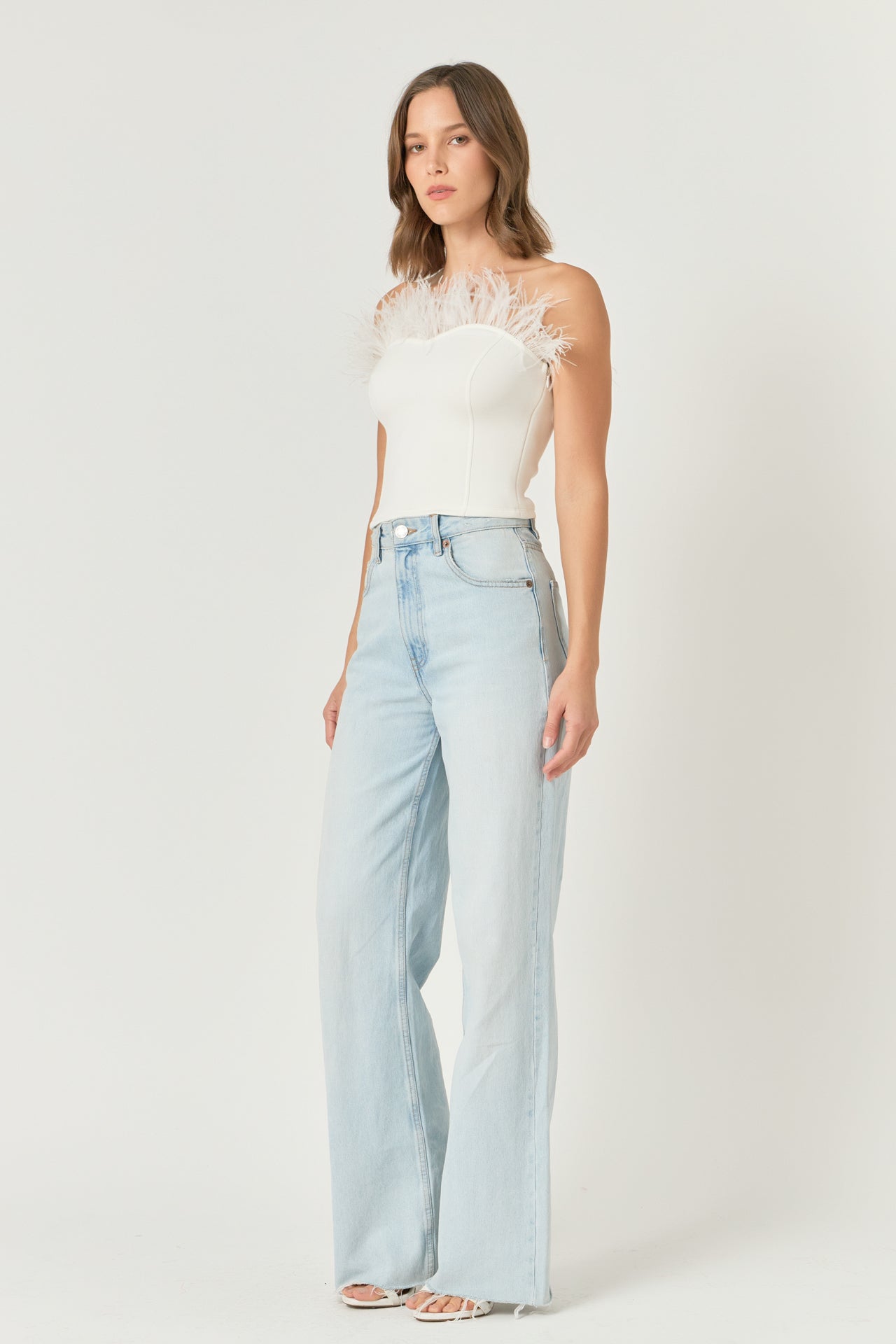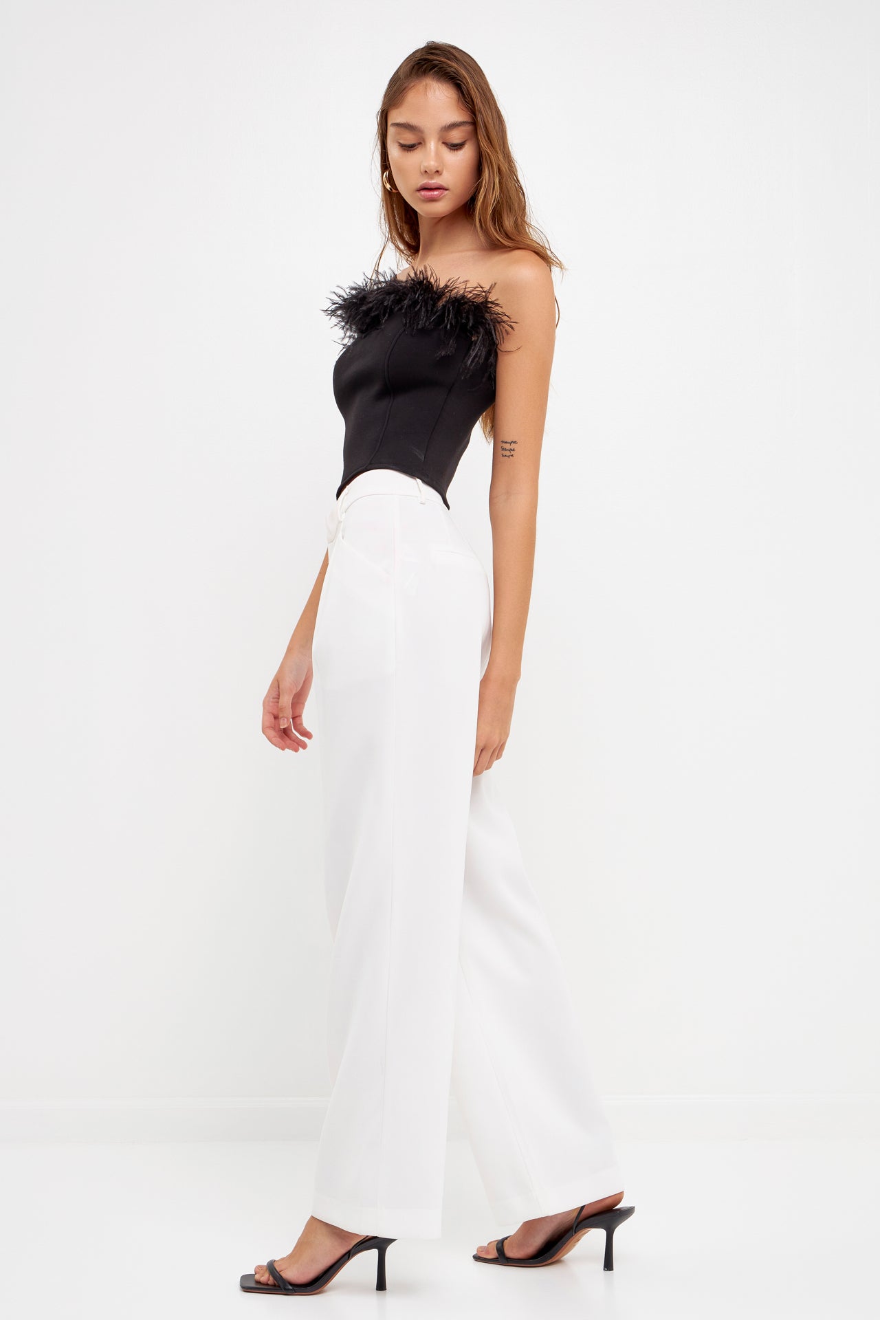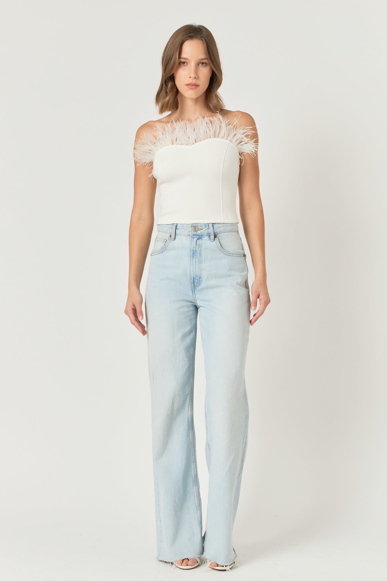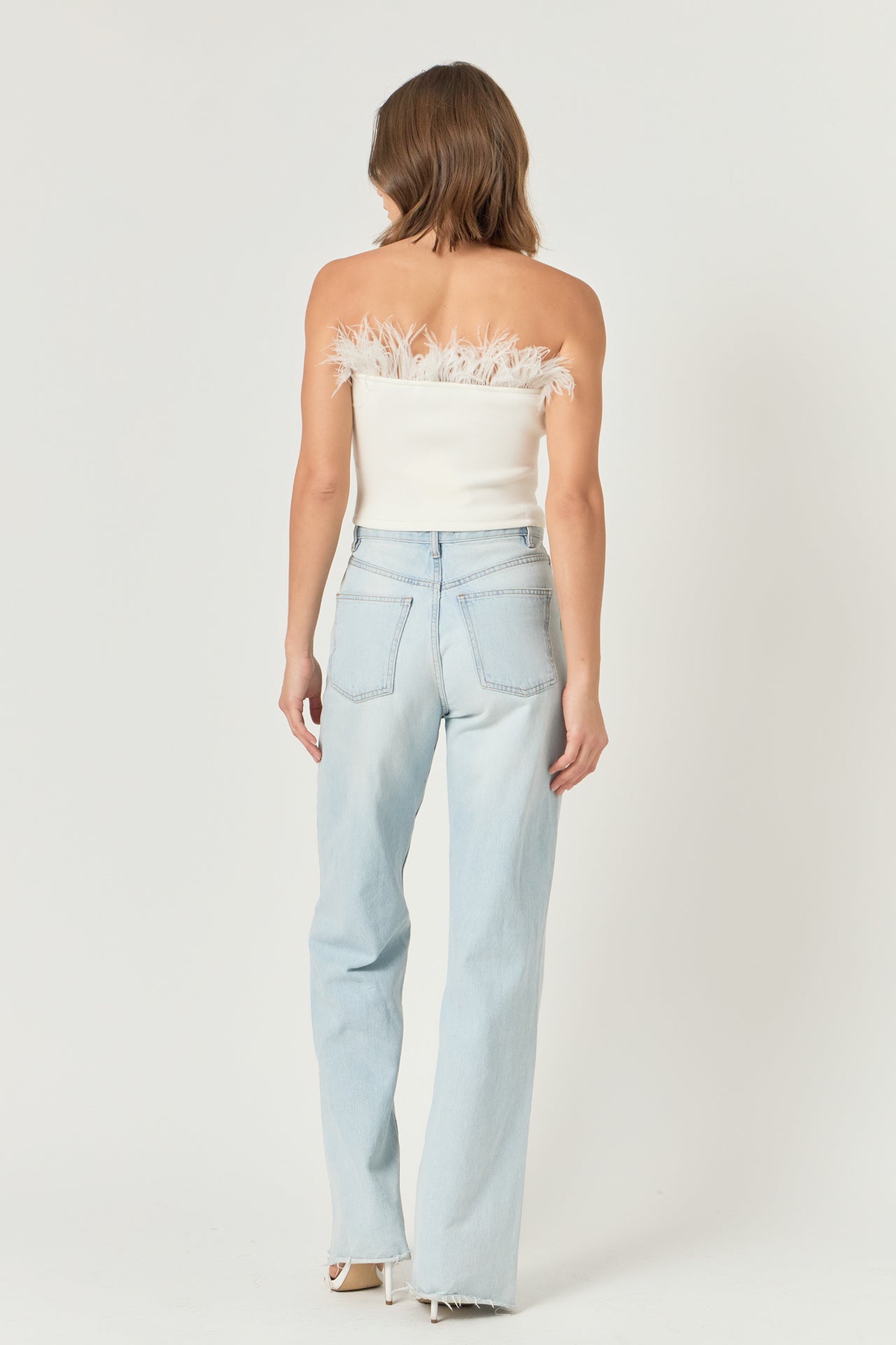 Endless Rose Women’s Strapless Knit Feather Top | White|mauve|black