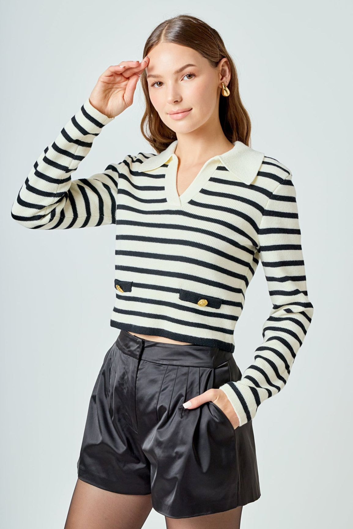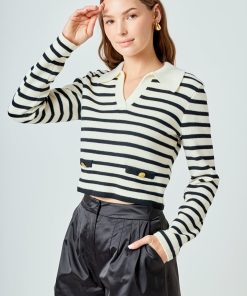 Upgrade your sweater game with our Striped Knit Collared Sweater. Made from high-quality knit material, this sweater is both cozy and stylish. The classic collar adds a touch of sophistication, while the front buttons give it a unique twist. The striped pattern is perfect for adding a pop of color to your wardrobe and will keep you on-trend all season long. Suitable for any occasion, dress it up or down for a versatile look. Don’t miss out on this must-have sweater. Shop now and stay warm in style.