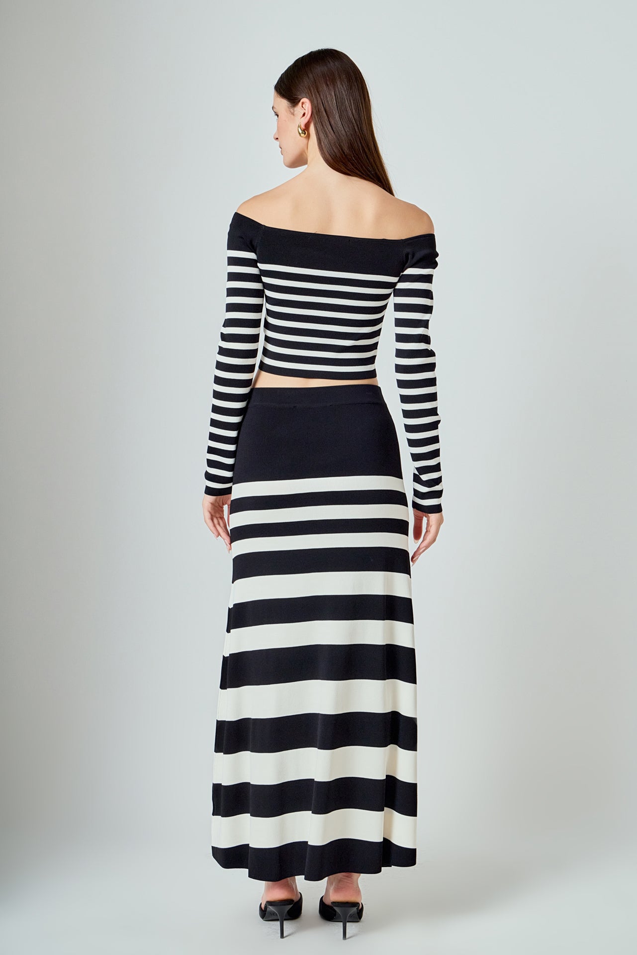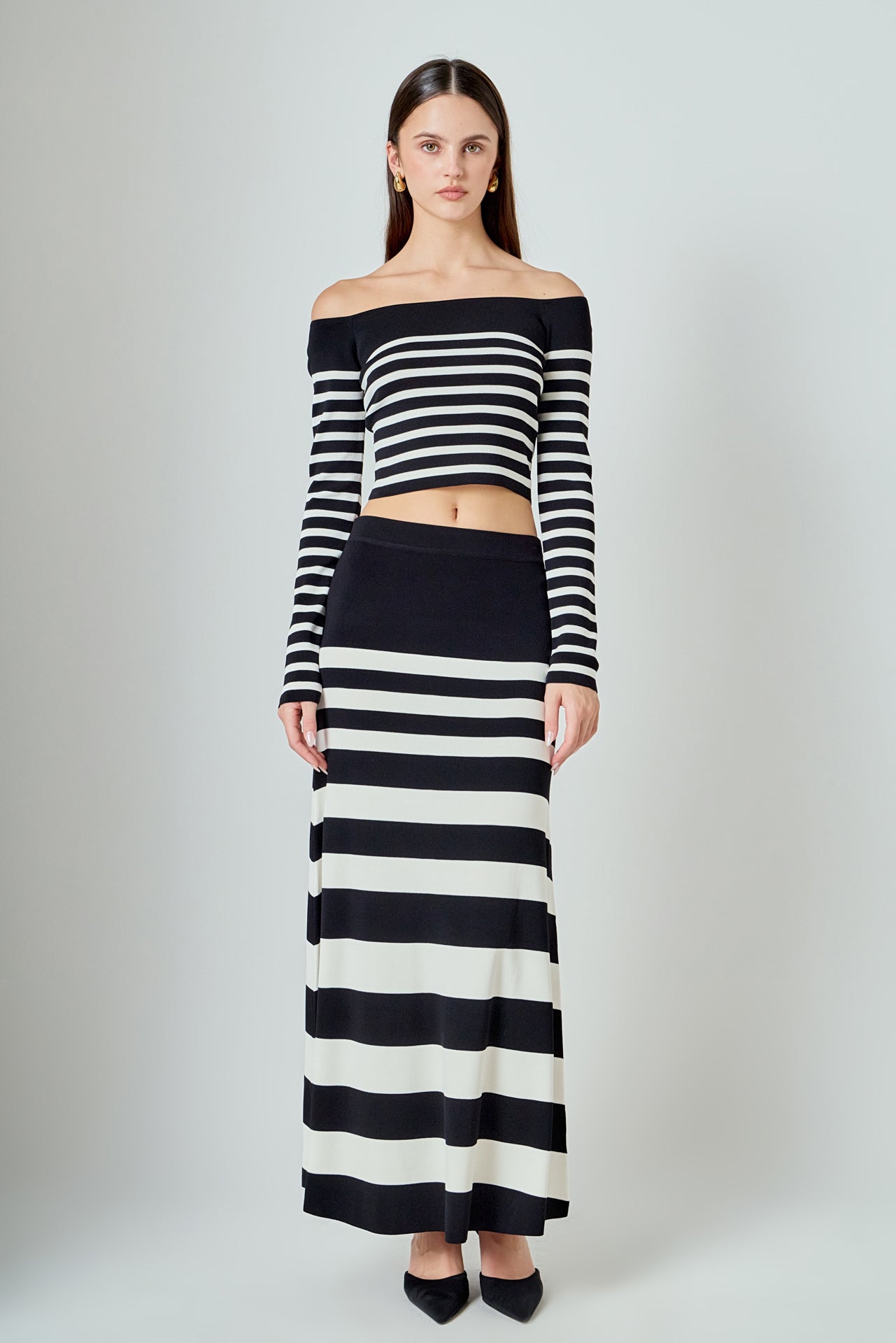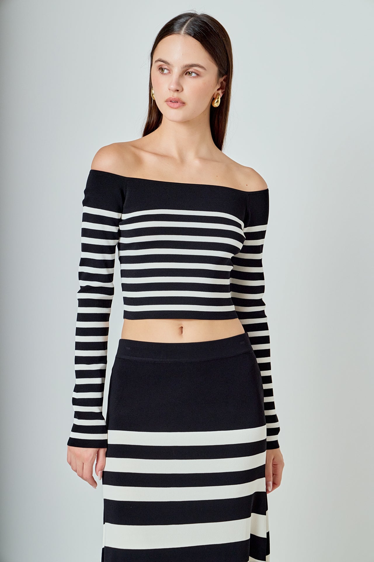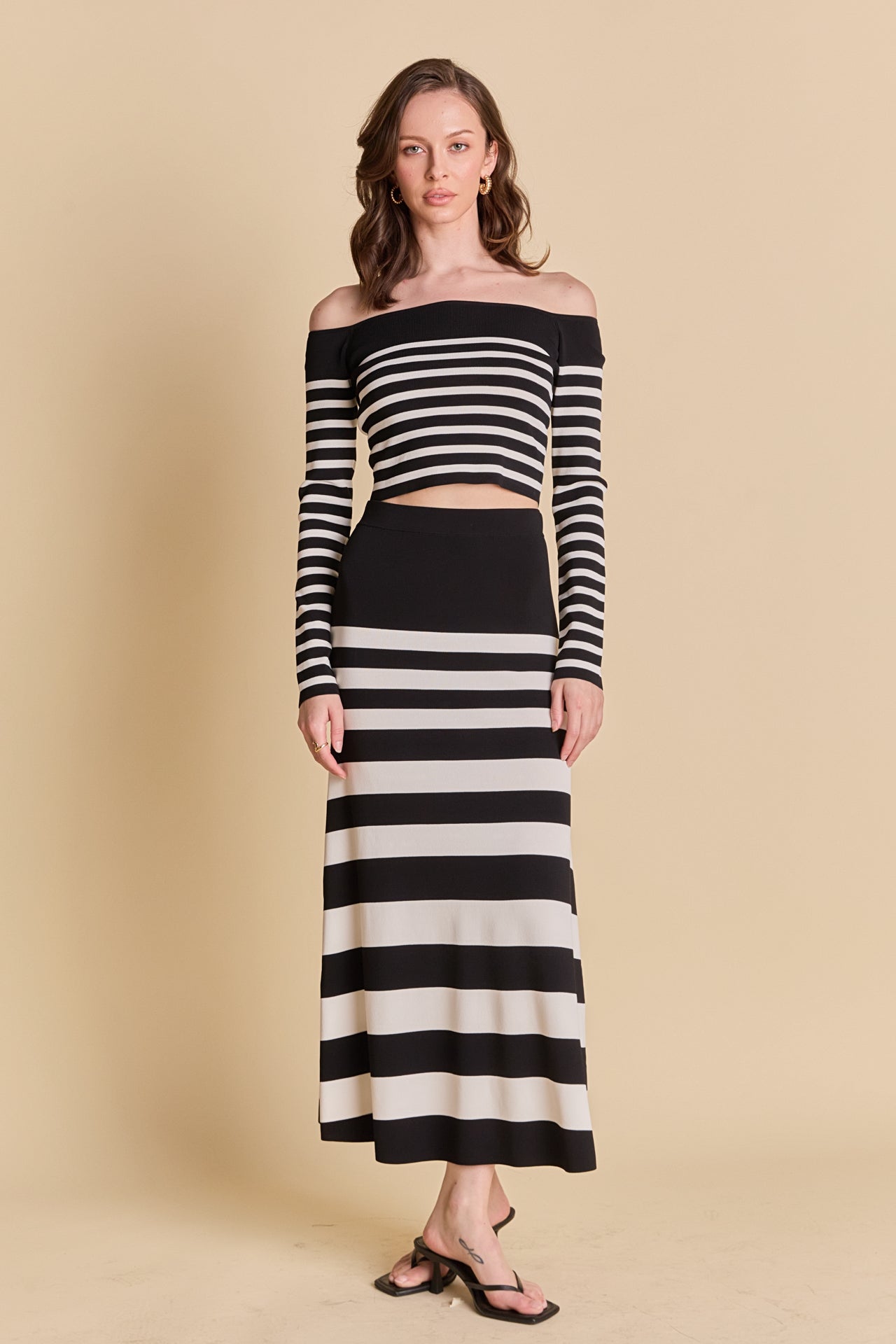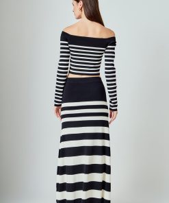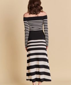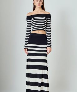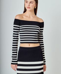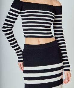 Endless Rose Women’s Striped Knit Off Shoulder Sweater | Black & Cream