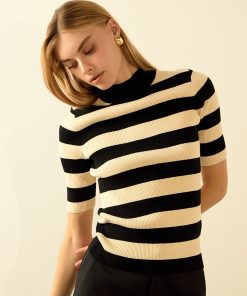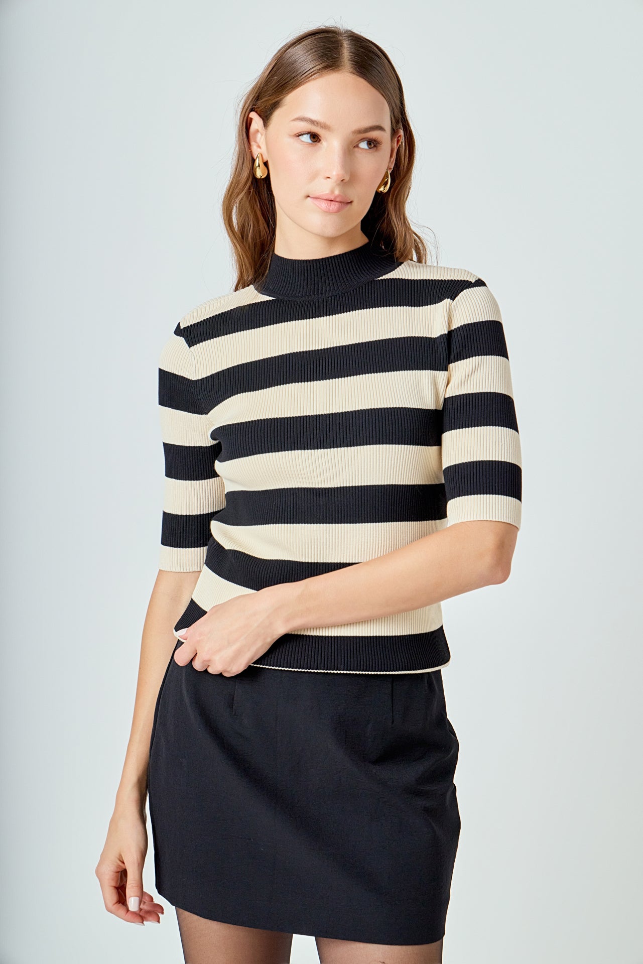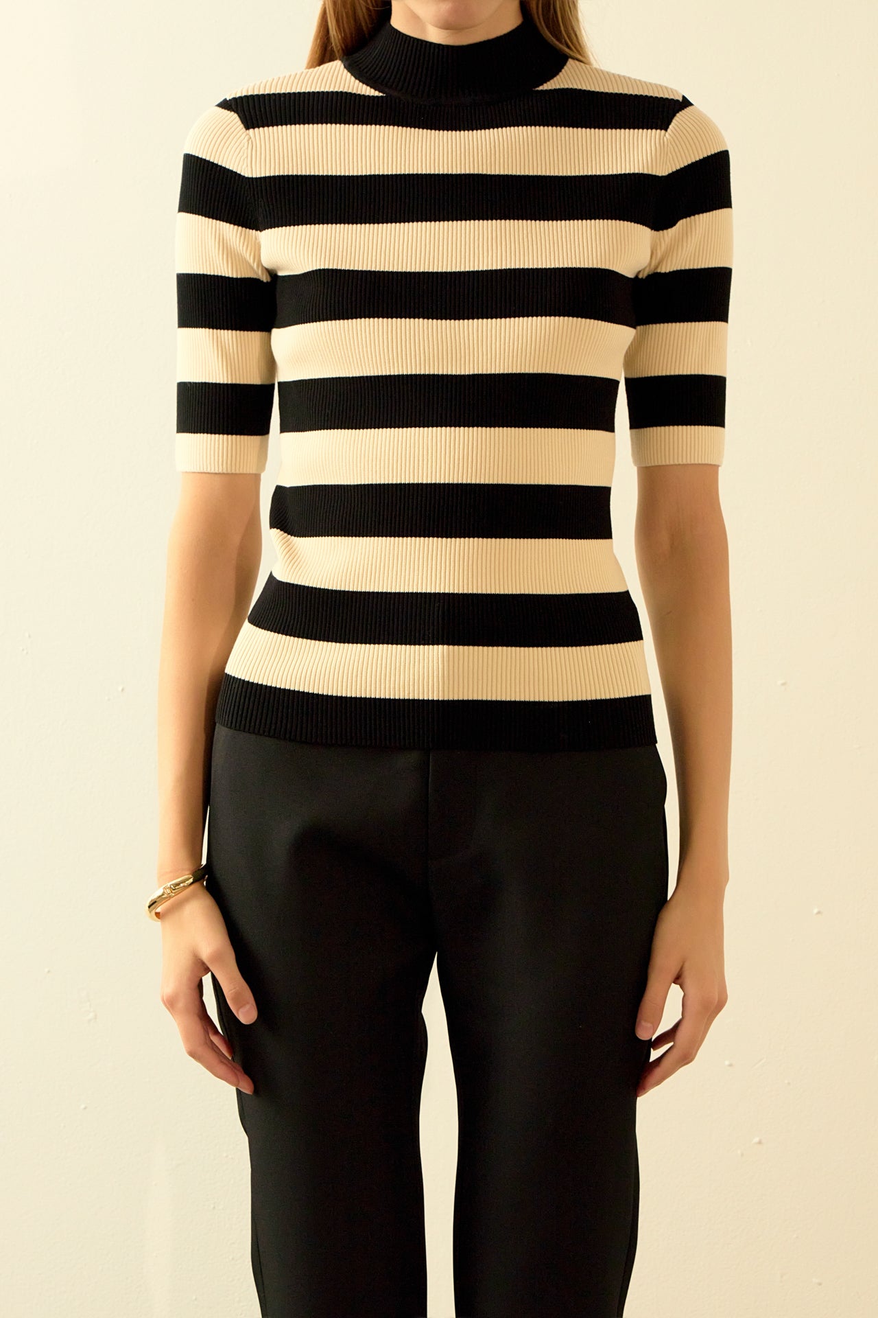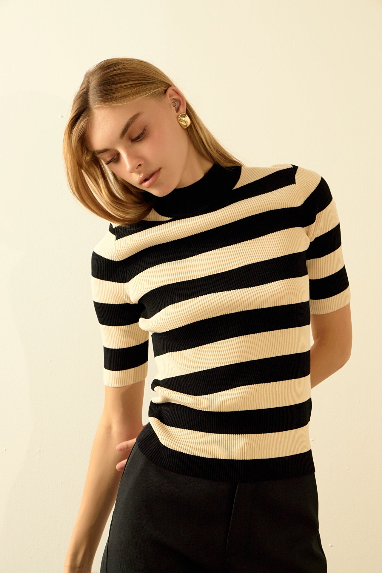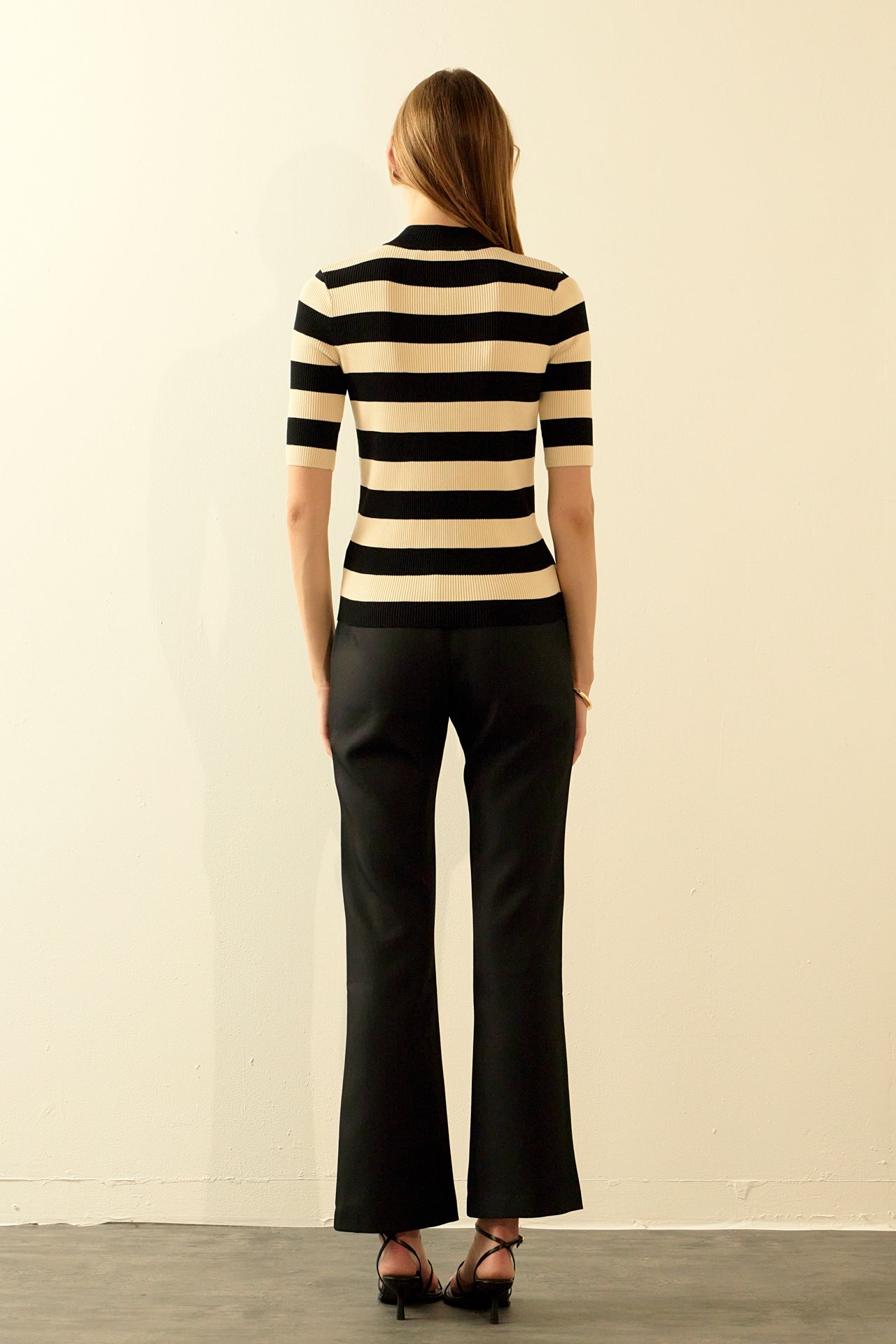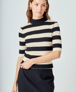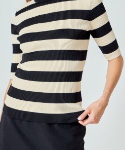 Endless Rose Women’s Striped Knit Top | Black & Nude