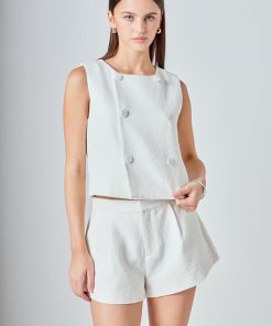 Endless Rose Women’s Textured Wide Leg Shorts | White