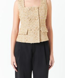 - Tied high collar