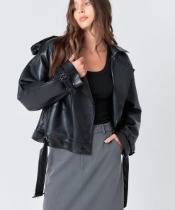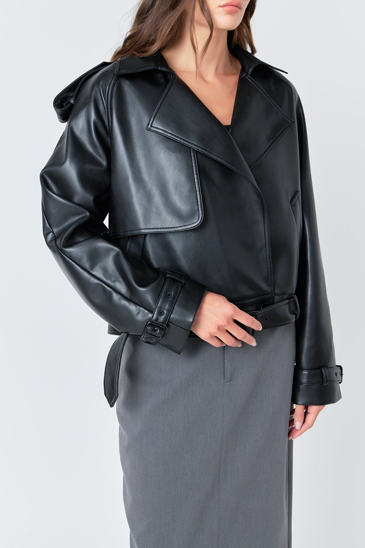 Introducing our Trench Short Pu Jacket, perfect for adding a touch of edgy sophistication to any outfit. Crafted from high-quality Pu material, this jacket boasts an oversized fit for a trendy and comfortable look. The collar adds a classic touch while the long sleeves with belt cuff details elevate the style. Stand out from the crowd with this unique and versatile jacket, perfect for any occasion. Elevate your wardrobe and stay on trend with our Trench Short Pu Jacket. Shop now and add this must-have piece to your collection. Don’t miss out! Search engine optimized for keywords: Trench Short Pu Jacket, Pu material, Overs