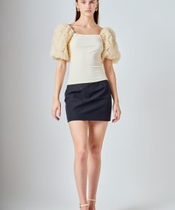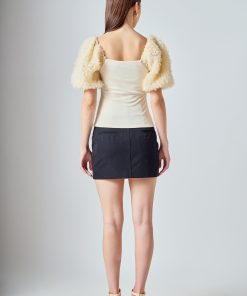 Am I the drama?! Well, this top sure is. The bold tulle puff sleeves are the perfect mix of dramatic and feminine. The bodice is made from a stretchy knit fabric that hugs you ever so slightly. Whether you’re going to dinner with friends or have an important work meeting you’ll feel confident and beautiful in this top.
