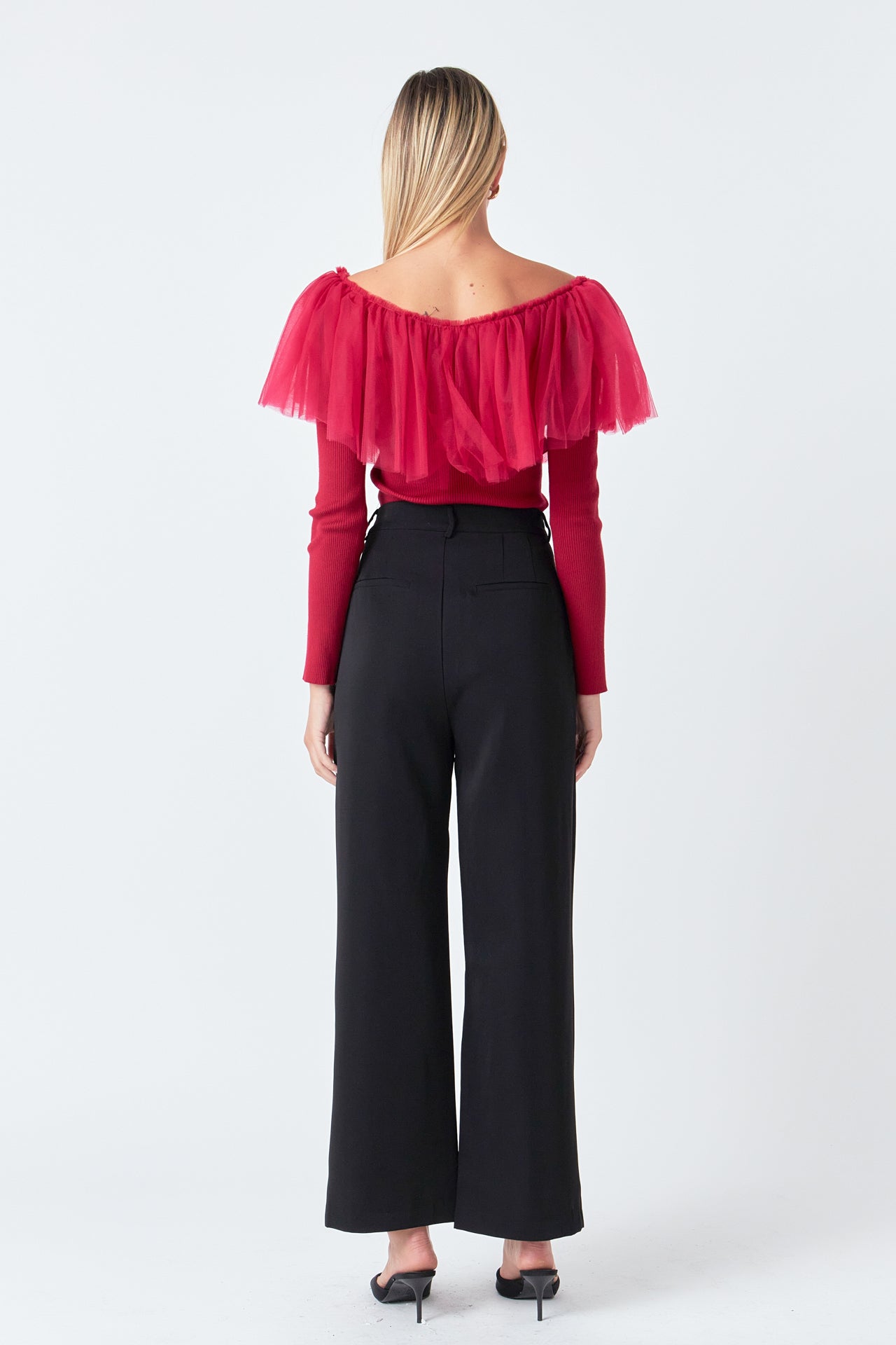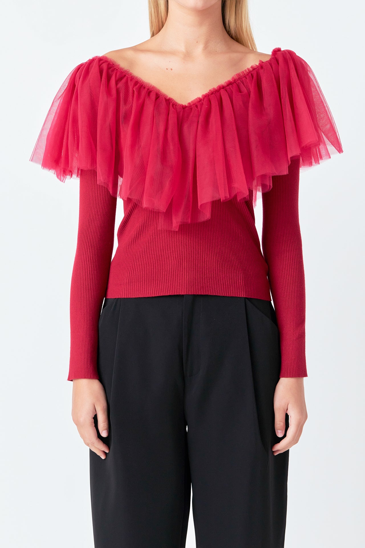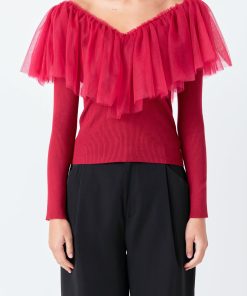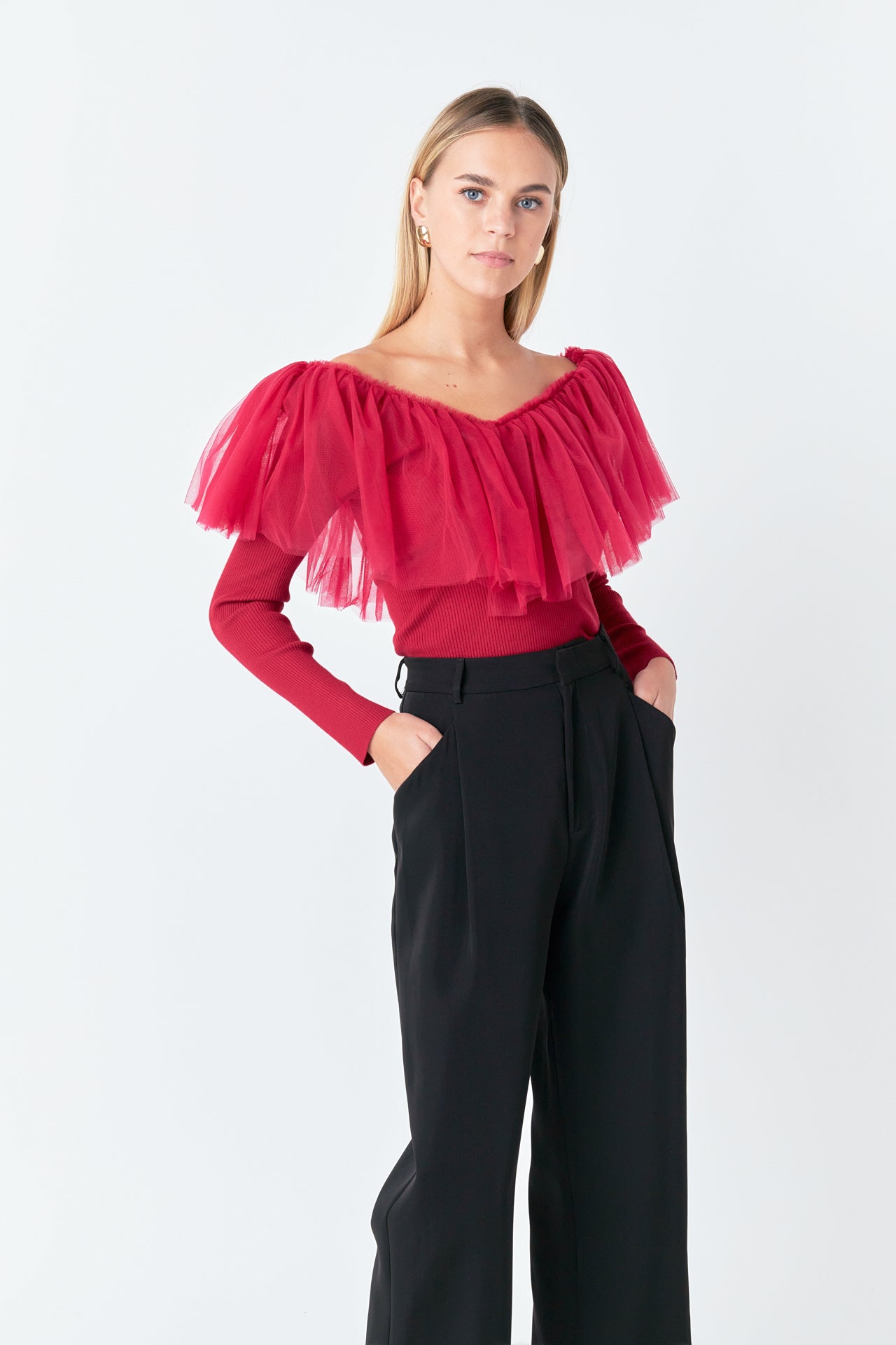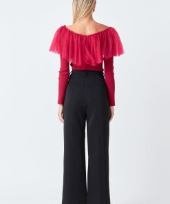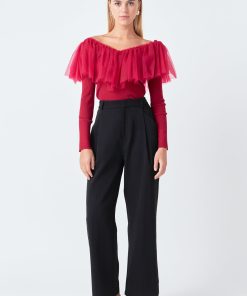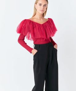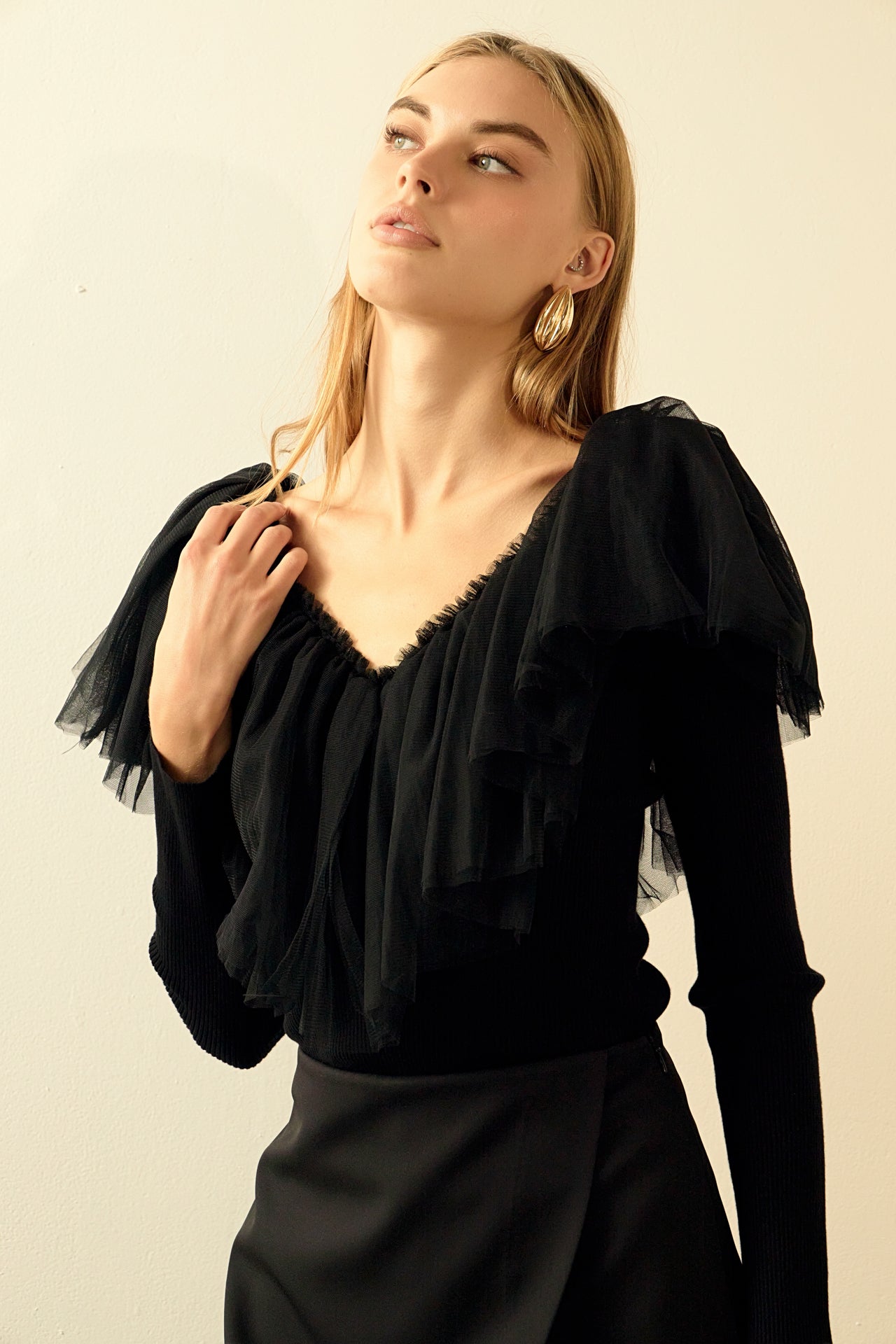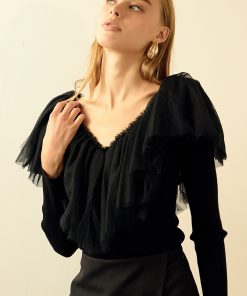 Who doesn’t love tulle?! This long sleeve top features a beautiful and elegant tulle design that will dress up any outfit. Pair with your favorite trousers or skirt and you’ll be ready to go! This versatile top can be styled for just about anywhere, including work, a fancy dinner, and a party.