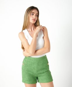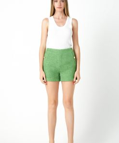 Endless Rose Women’s Tweed Buttoned Shorts | Green