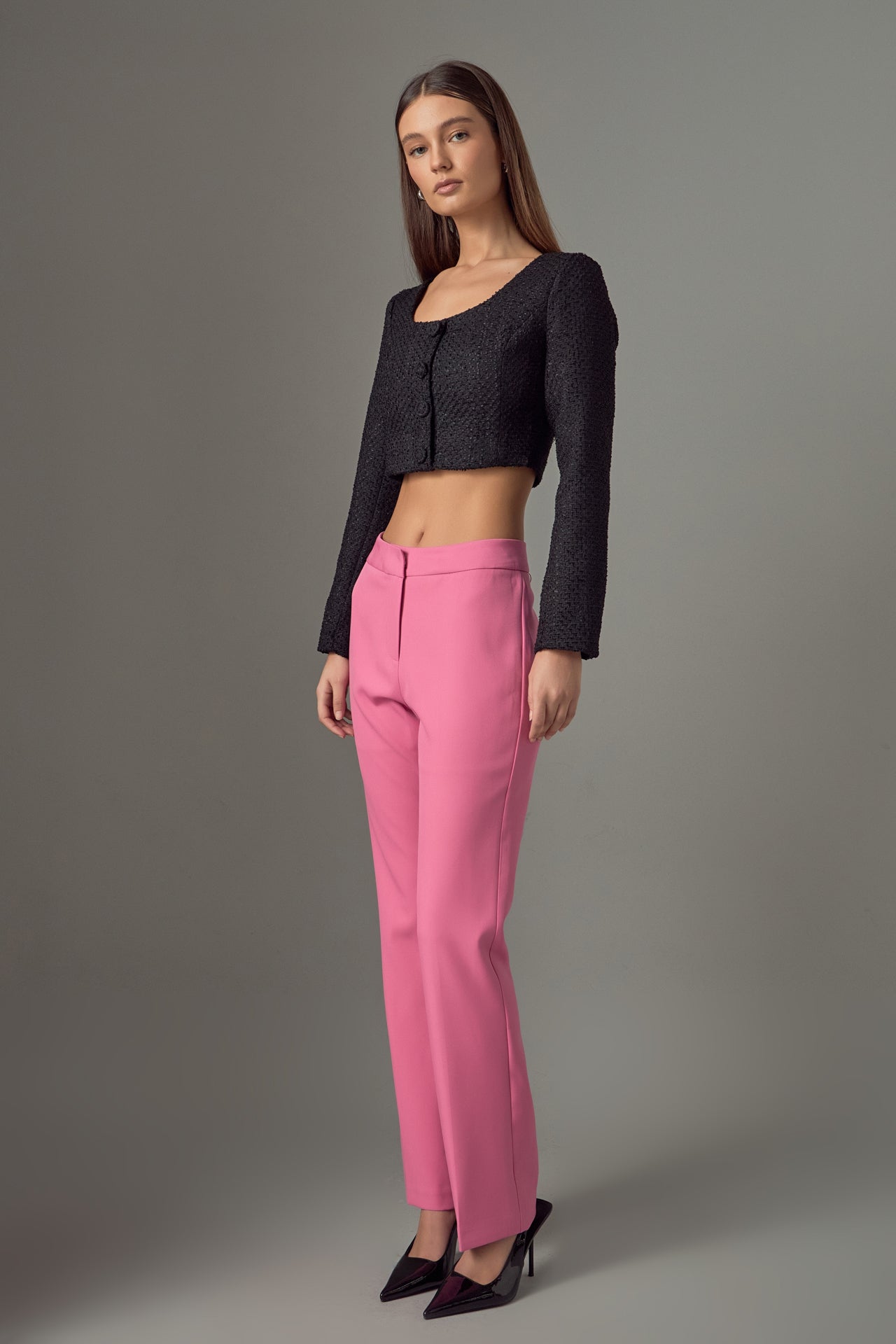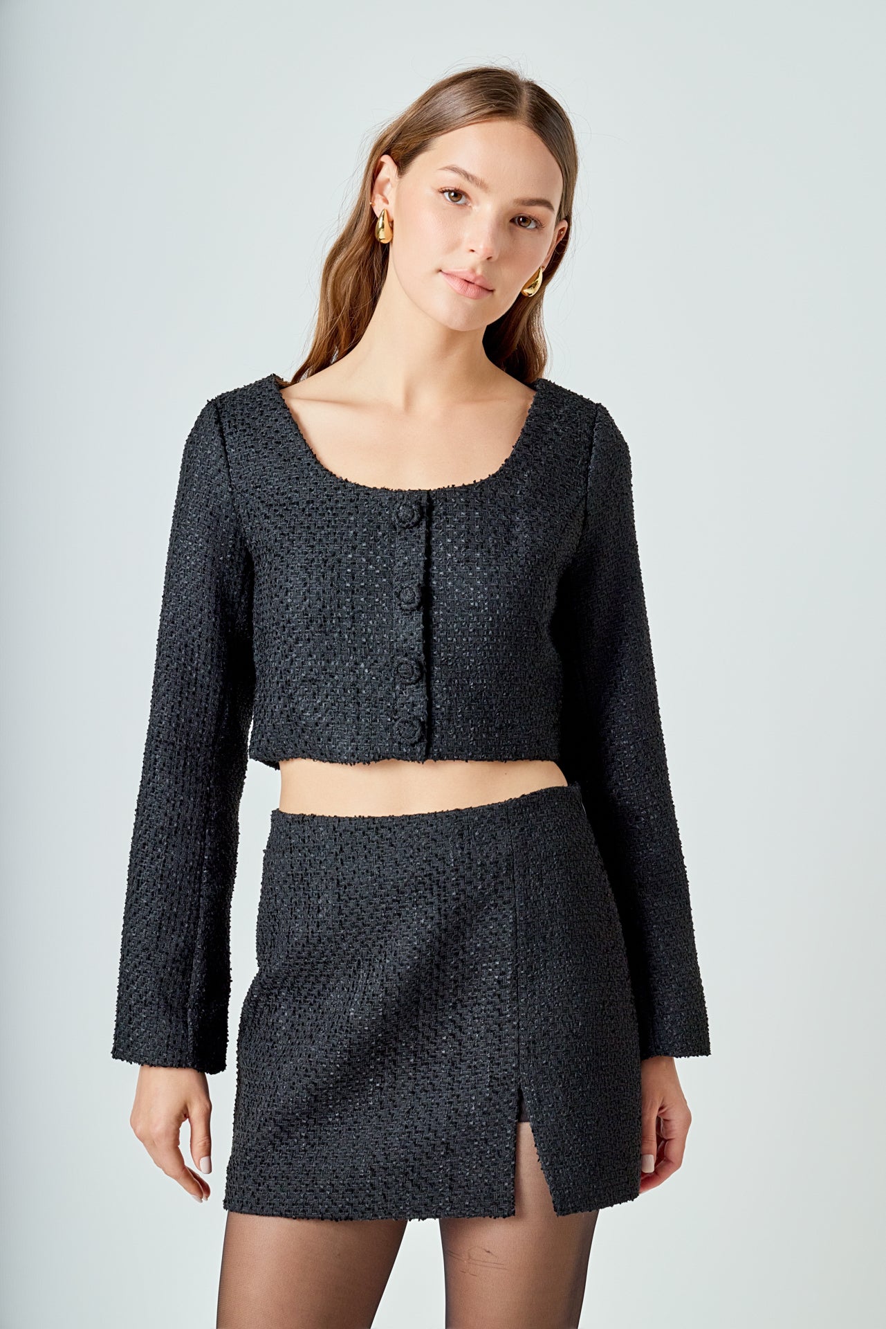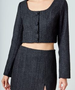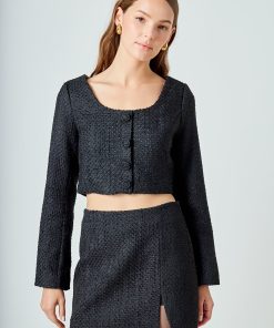 Elevate your wardrobe with our must-have Tweed Buttoned Top. Its timeless tweed fabric exudes elegance and sophistication, perfect for any occasion. A flattering scoop neck and shoulder pads effortlessly enhance your silhouette, while the button detail adds a touch of refinement. Versatile and stylish, this top is a wardrobe essential. Perfect for both casual and formal looks, it’s a versatile piece that you can dress up or down. Upgrade your style game and stand out with our Tweed Buttoned Top. Shop now for the ultimate chic look.