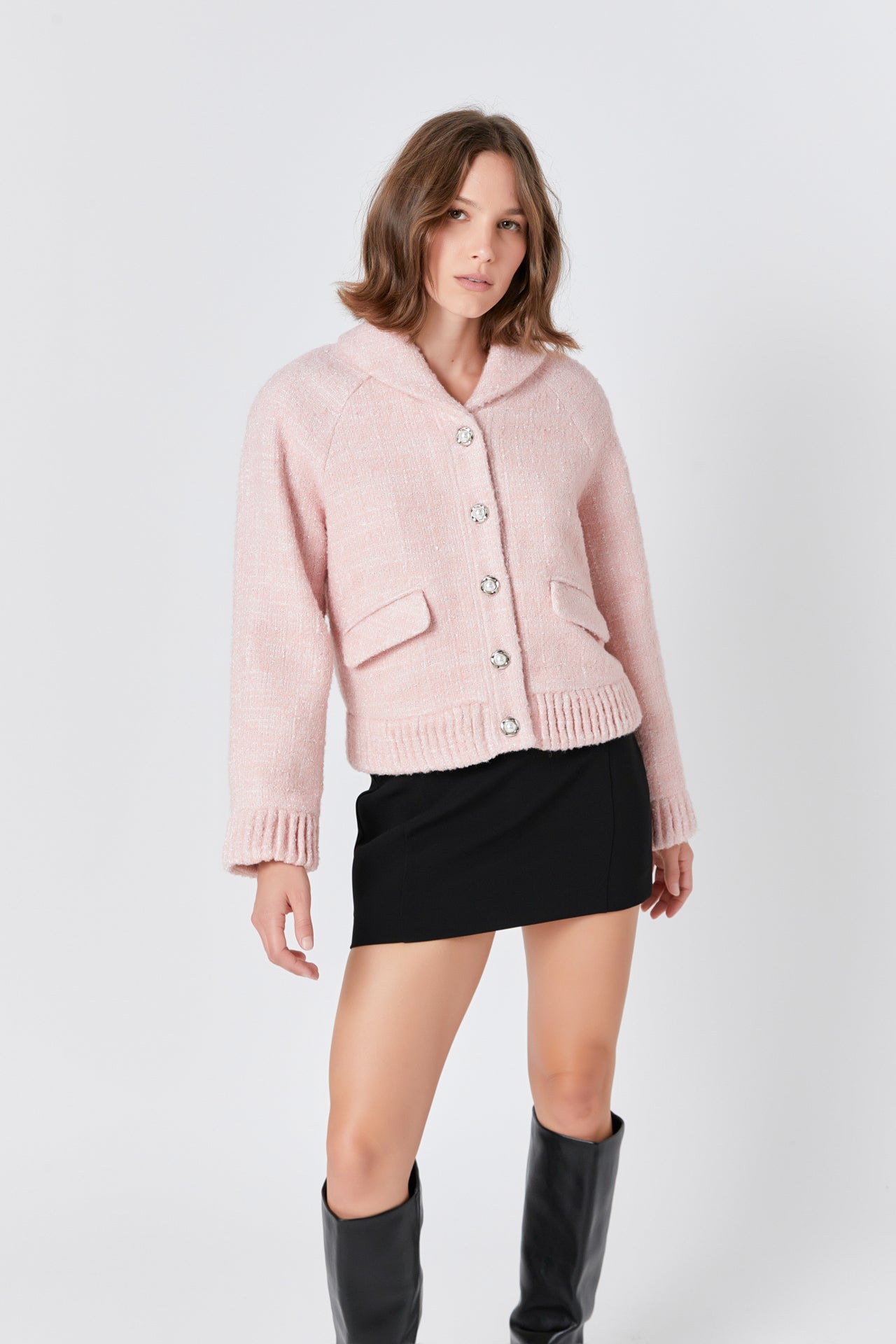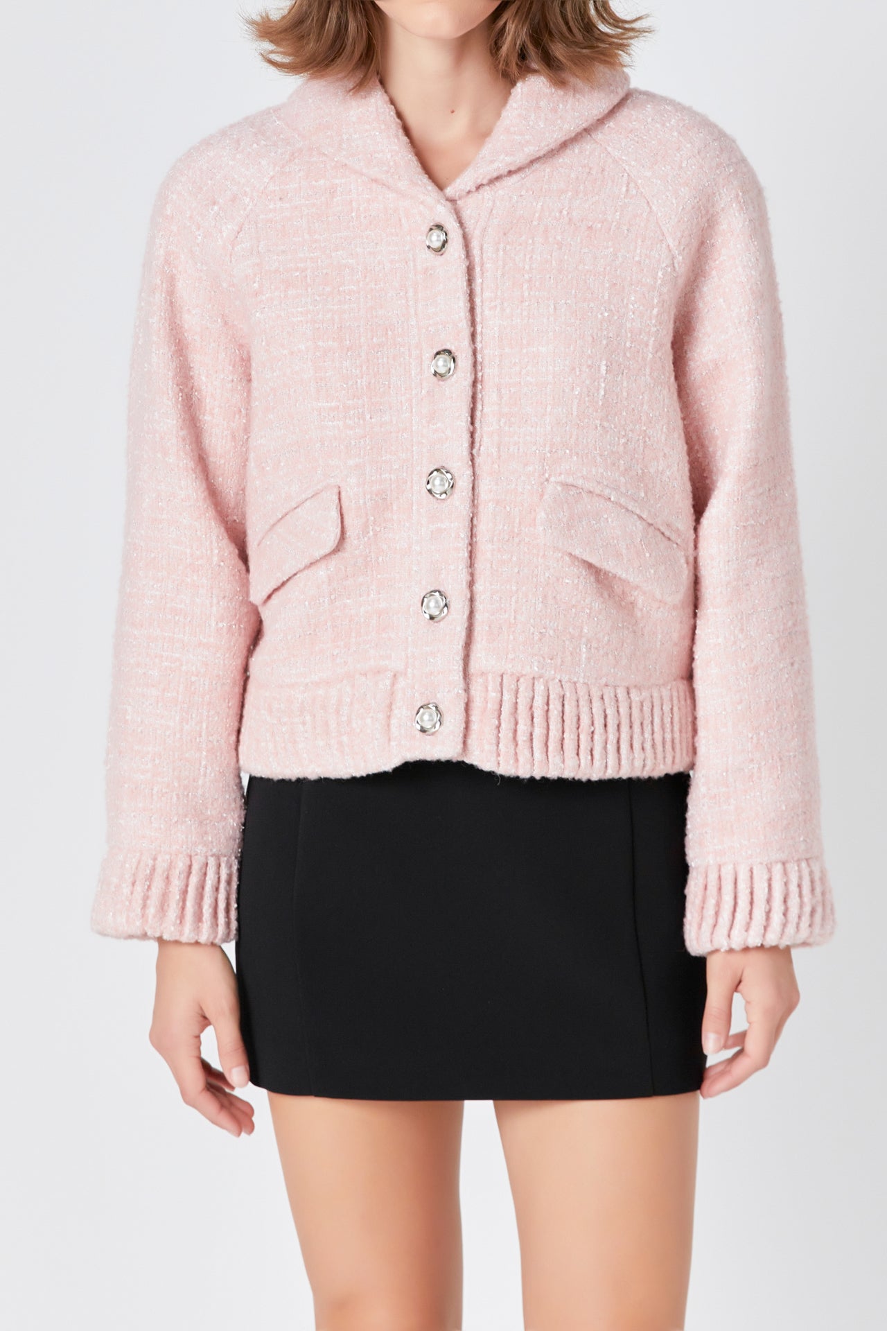 Endless Rose Women’s Tweed Collared Jacket | Blush Pink