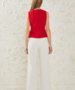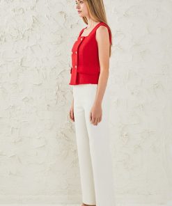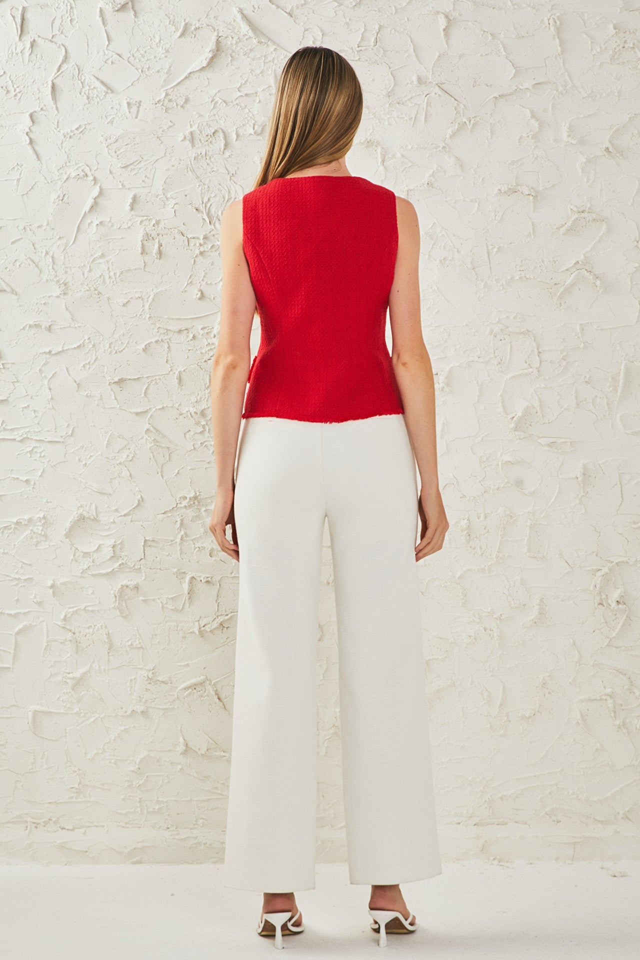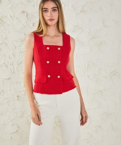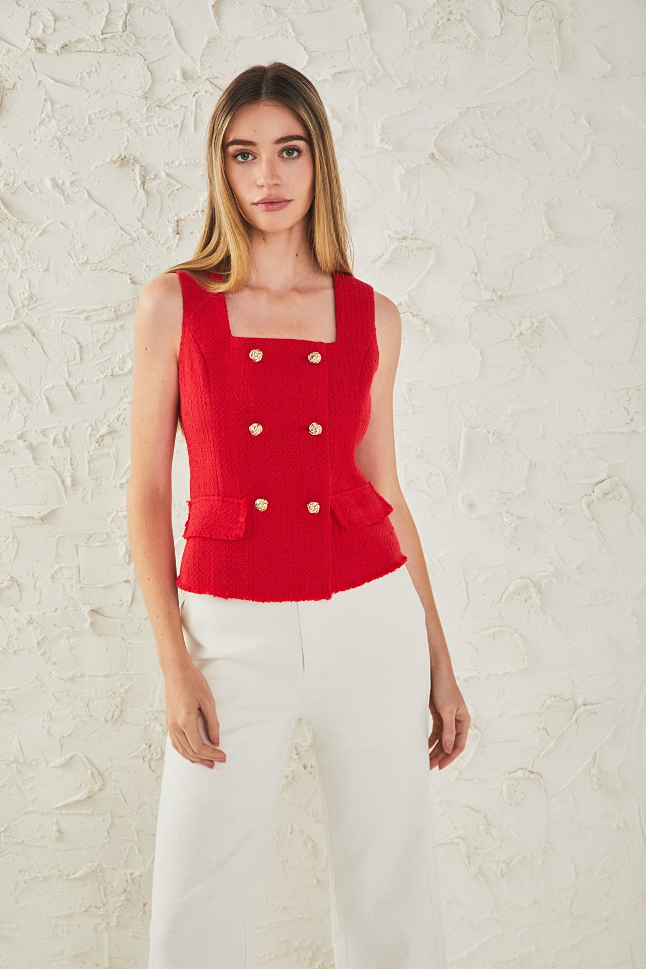 Endless Rose Women’s Tweed Fringed Double Button Top | Red|pink