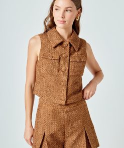 Endless Rose Women’s Tweed Pleated Shorts | Camel