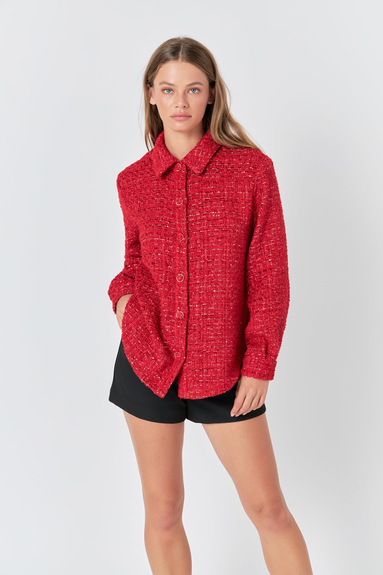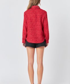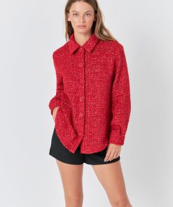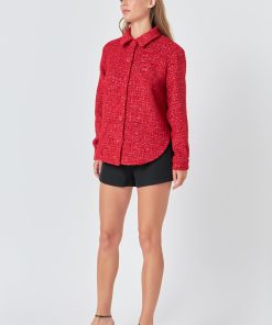 Introducing our versatile Tweed Shirt, a must-have addition to your wardrobe. Made from high-quality tweed fabric, this shirt offers both style and comfort. The classic collar adds a touch of sophistication, while the placket with buttons gives a polished look. The tweed texture adds a unique dimension to your outfit, making it perfect for any occasion. With both quality and style in mind, our Tweed Shirt is sure to become your go-to choice. Perfect for both casual and formal wear, make a statement with our trendy Tweed Shirt. Shop now and elevate your fashion game!