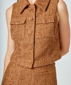 Endless Rose Women’s Tweed Short Sleeveless Jacket | Camel
