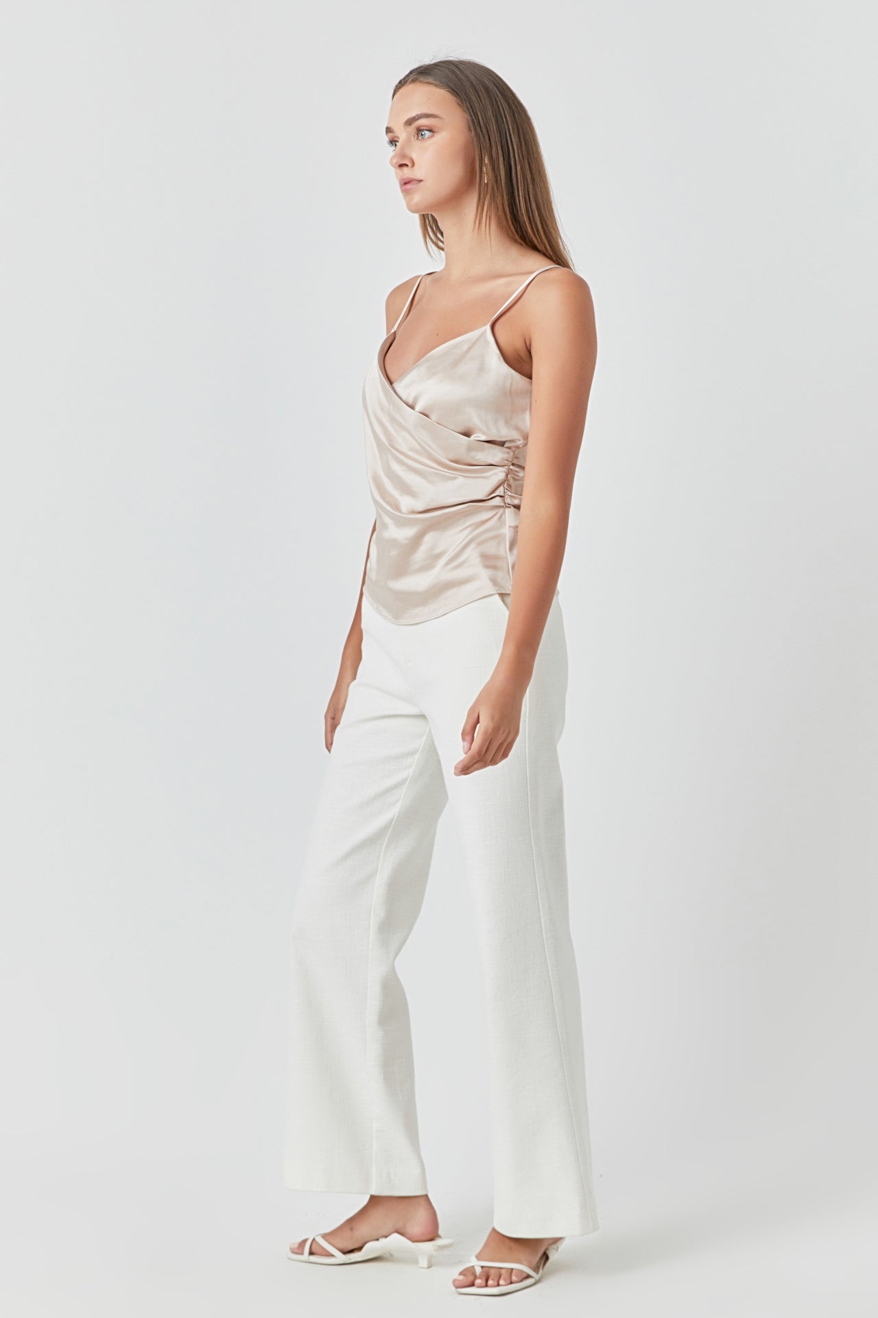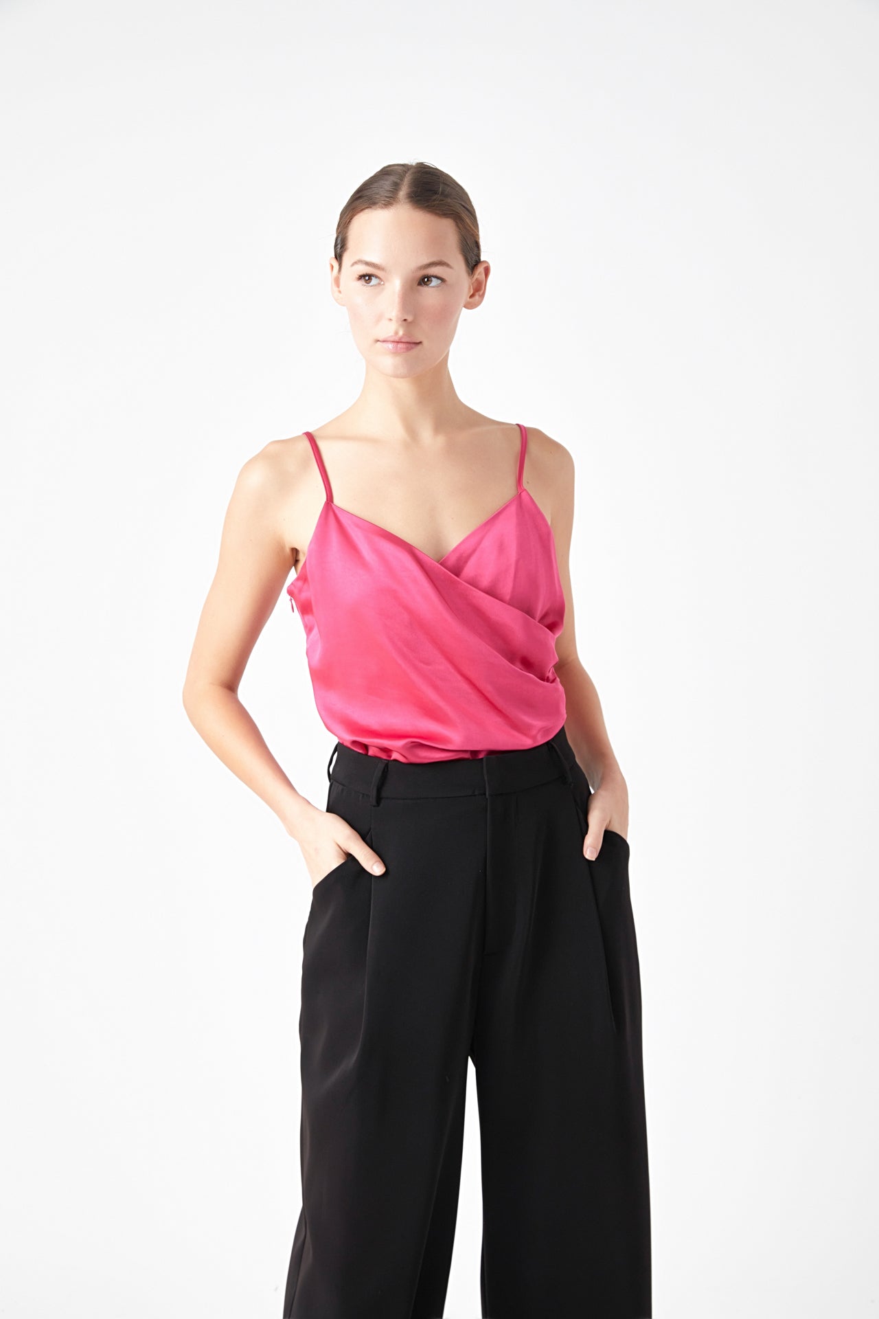 Endless Rose brings you this gorgeous Wrap Cowl Neck Satin Top. This top features a cowl neck, wrapped silhouette, ruched side detail, and adjustable straps. It’s made of a smooth satin fabric that looks and feels amazing. You’ll love the way you look and feel in this beautiful top.