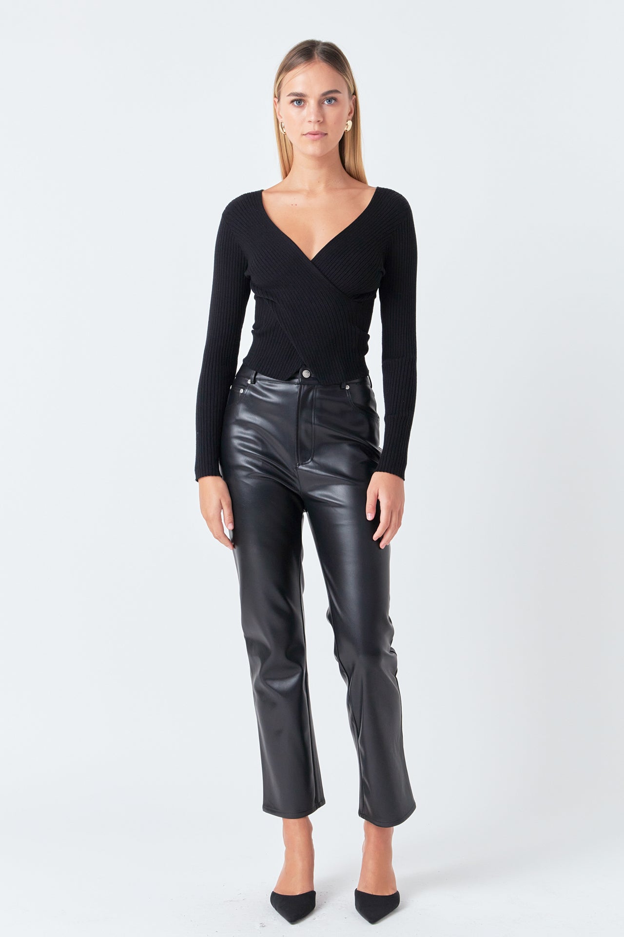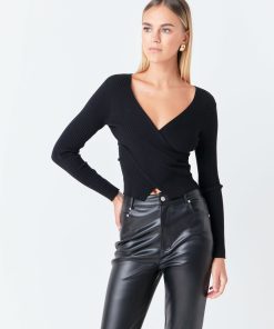 The perfect top to throw on without a second thought. The neckline is detailed with a double row of wrapped knit. This sweater is so easy to style and the fitted look will make you look amazing.